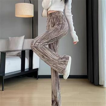 YF7278-(3色入内)慵懒风韩版新款松紧腰直筒坠地感暗条纹运动休闲百搭西装裤