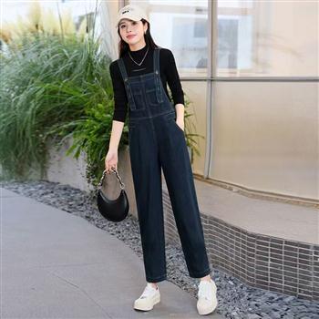 YF6324-图片色秋冬带插口袋宽松显瘦复古气质背带连体牛仔连衣裙