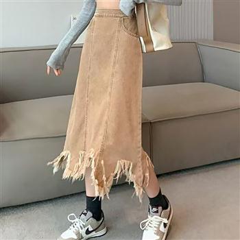 YF7182-图片色日系原宿风收腹低腰A字褶折防走光复古蓝设计感短裙
