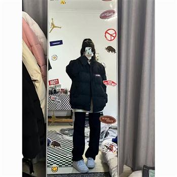 YF6362-图片色冬装后背字母印花加厚保暖长袖拉链贴标面包服羽绒外套