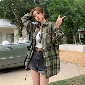 YF6955-图片色春装新款磨毛格子衬衣 慵懒风复古大码休闲百搭上衣