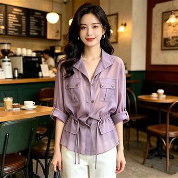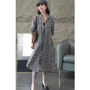 YF7541-图片色美式格子长袖翻领宽松大码薄款复古风年经休闲百搭衬衣