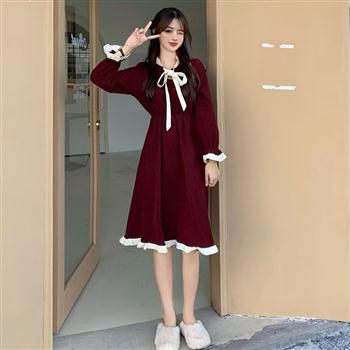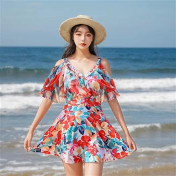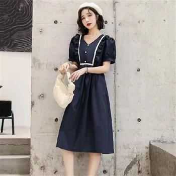 YF7542--图片色甜美时尚波点泡泡袖围脖方领名媛气质夏天法式连衣裙