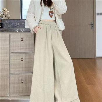 YF6213-(3色入内)木耳边设计坠地感阔腿收腹高腰直筒灯芯绒秋冬新款休闲裤