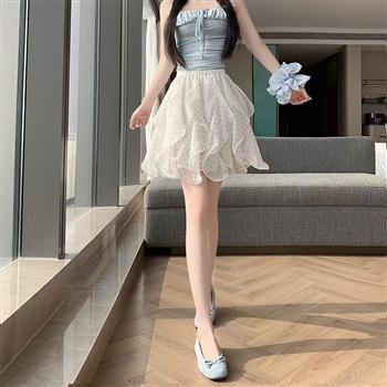 YF7459-图片色原宿风不规则荷叶边波浪纹A字防走光波点雪纺短裙