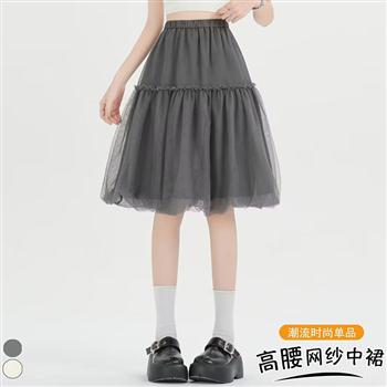 YF7465-(5色入内)法式网纱拼接百褶A字夏季原宿风蓬蓬雪纺防走光内搭短裙