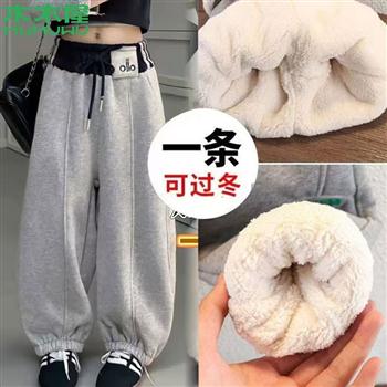 YF6906-(2色入内)美式加绒撞色高腰贴标束腿阔身休闲百搭时尚运动保暖裤