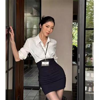 YF3191-(3色入内)时尚短袖翻领工装双口袋弧边衬衫搭松紧腰阔腿短裤 休闲套装