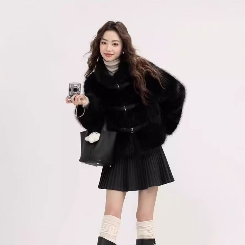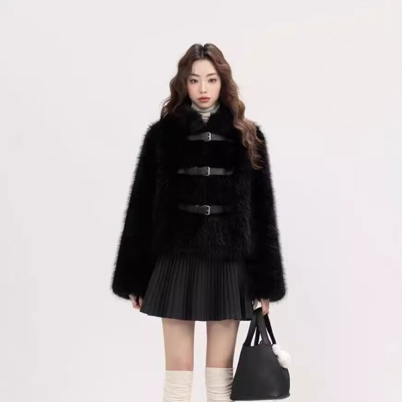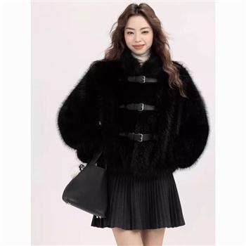 YF6472-(5色入内)韩版名媛气质大衣毛毛绒拉链加绒加厚仿皮草貂绒冬季时尚大衣