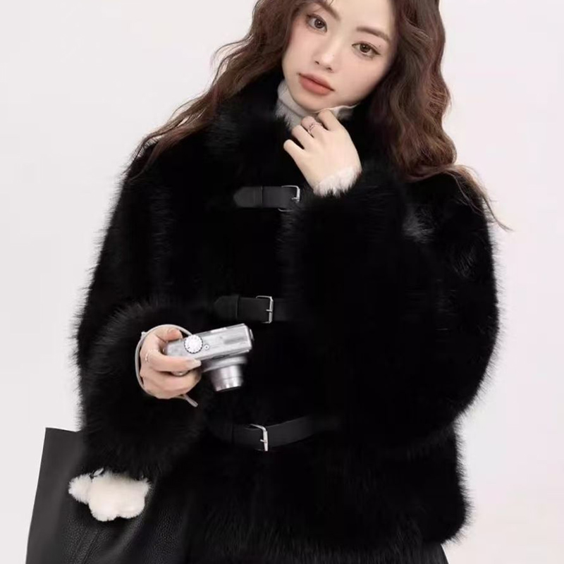 YF6658-图片色时尚冬装新款系扣设计长袖套头仿狐狸毛环保皮草大衣外套