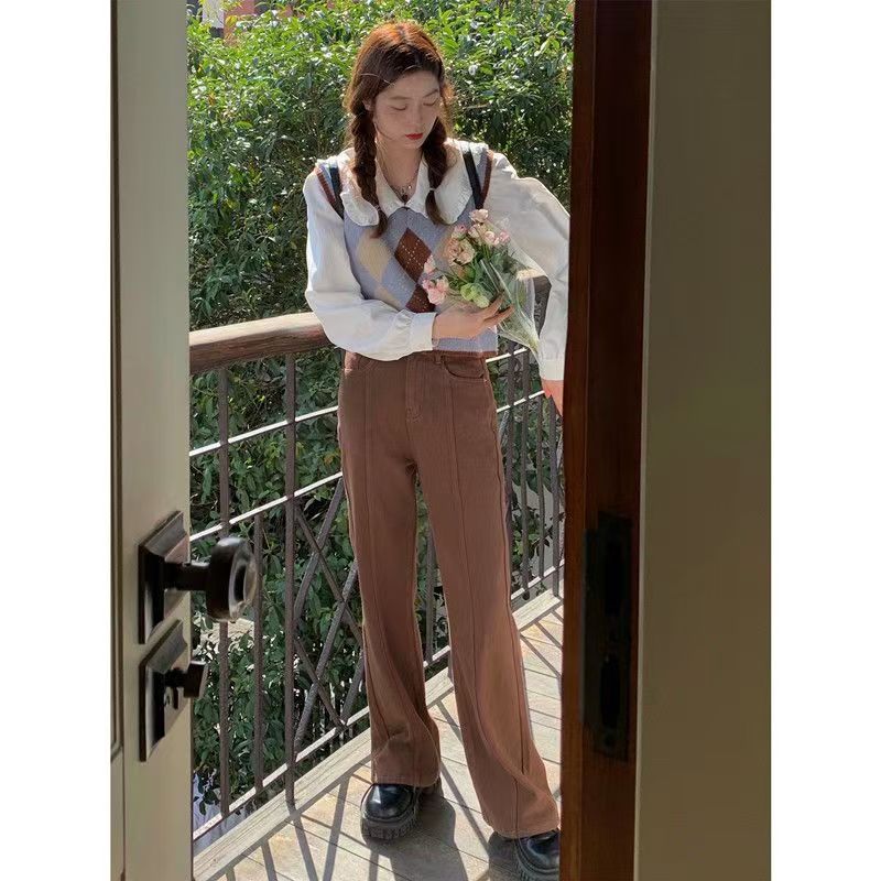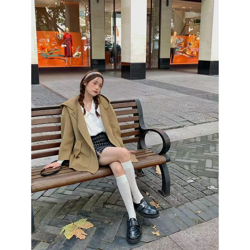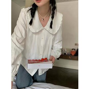 YF6669-图片色甜美小清新娃娃领泡泡袖系扣大码白色复古风法式衬衫
