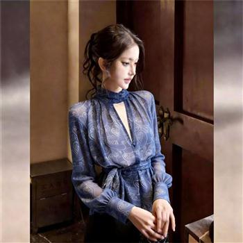 YF6889-图片色休闲春秋百搭长袖系扣收腰显瘦复古棕色个性短款夹克上衣