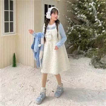YF6029-图片色冬季可爱圣诞节小雪人补丁无袖方领宽松藏肉羊羔绒背心连衣裙