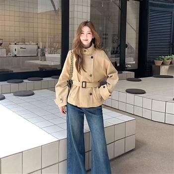 YF6378-(2色入内)韩版新款秋冬时尚短装系扣长袖双排扣英伦风大码简约风衣