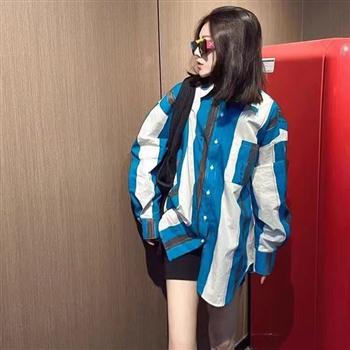 Name: S12180Korean Women stitching perspective chiffon sleeves U-neck long-sleeved T-shirt