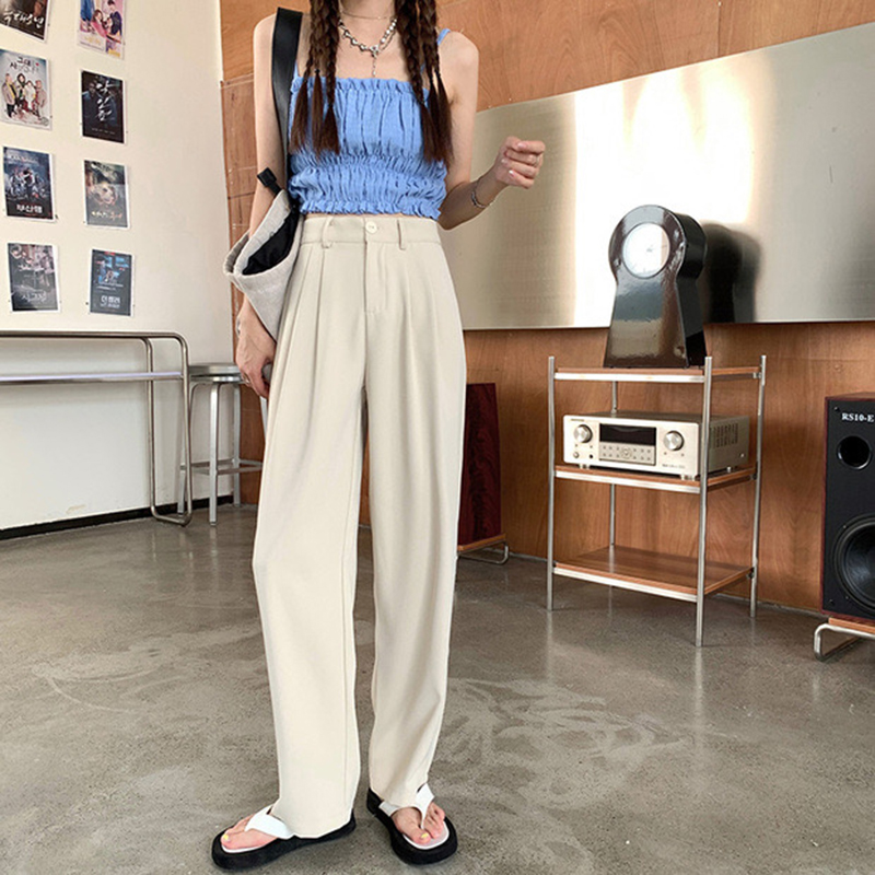 Y8218-(4色入内)韩版时尚秋冬新款高腰阔脚纯色百搭休闲西裤 拖地裤