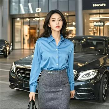 YF7041-(3色入内)精致丝质光面长袖翻领胖MM显瘦港式春秋百搭白色衬衫