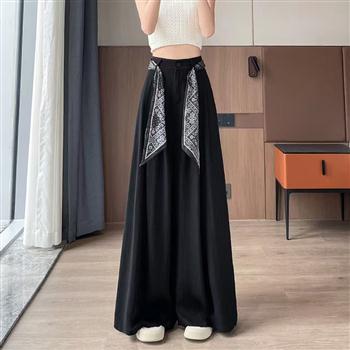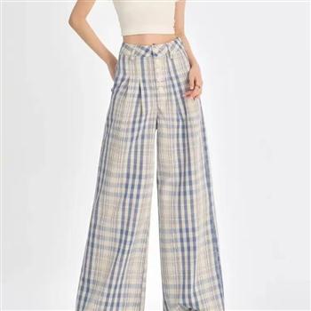 YF3595-图片色复古交叉菱形条纹微喇叭坠地感休闲百搭慵懒风休闲裤