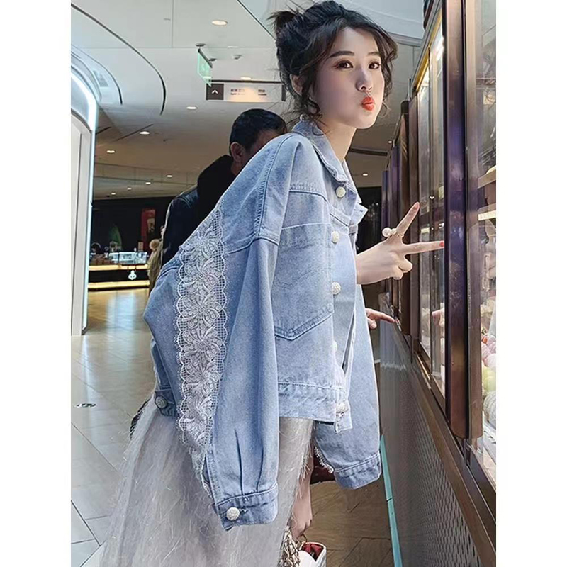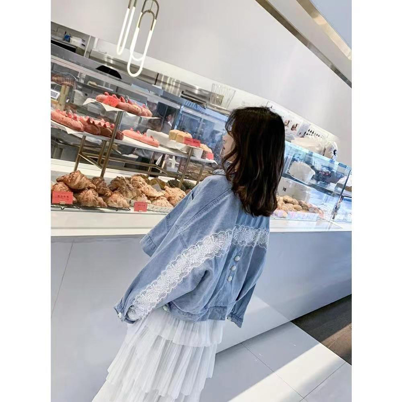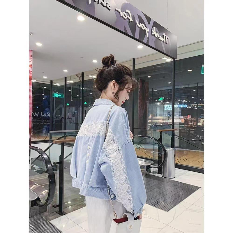 YF3868-图片色慵懒风后背蕾丝系扣开叉设计感BF风牛仔上衣 韩版夹克外套