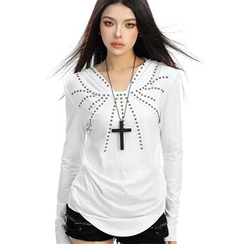 YF3910-(3色入内)性感露肩设计大少字母印花不规则裁剪下摆辣妹装T恤
