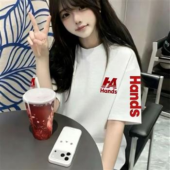 YF7409-(2色入内)港式慵懒风字母印花圆领短袖宽松大码简约气质T恤潮
