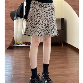 YF7455-图片色复古豹纹印花A字防走光内衬高腰显瘦夏装新款短裙