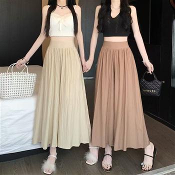 YF6470-时尚韩版收腹高腰褶折飘逸感阔腿坠地感纯色百搭休闲九分裤