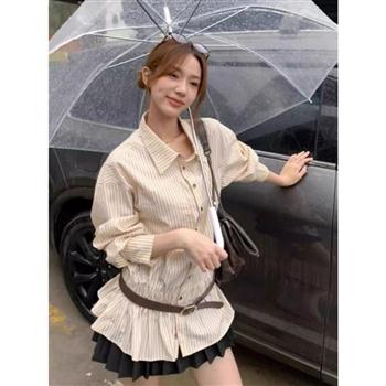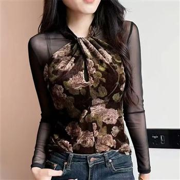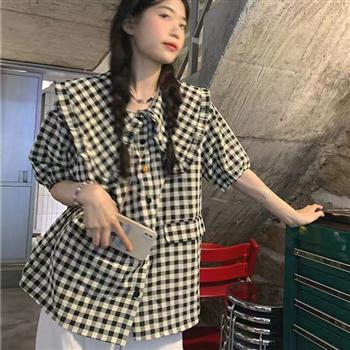 YF4370-(8色入内)复古格子拼接POLO领长袖春装新款 时尚气质显瘦T恤