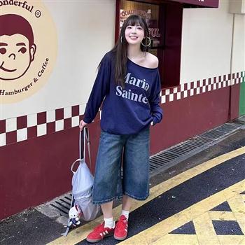 YF6351-图片色港式休闲时尚阔腿洗水蓝直筒慵懒风九分牛仔裤