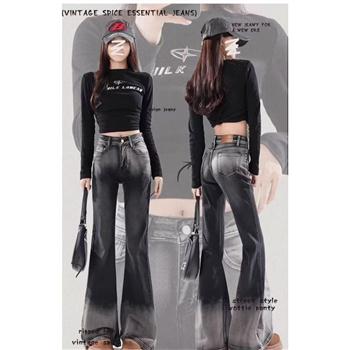 YF6354-图片色渐变式微喇叭收腹高腰扎染设计感辣妹潮流新款牛仔裤