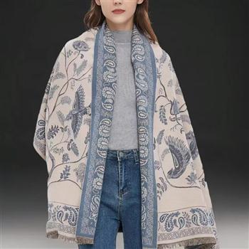 YF6909-图片色秋冬波西米亚风提花刺绣腰果花图腾仿羊绒柔顺披肩空调房外搭