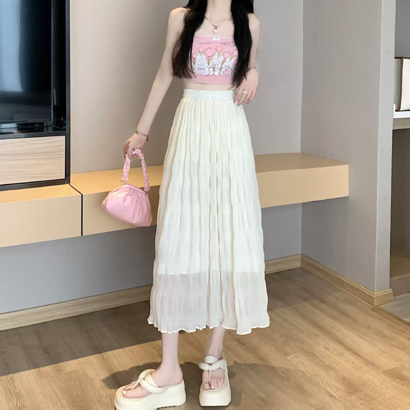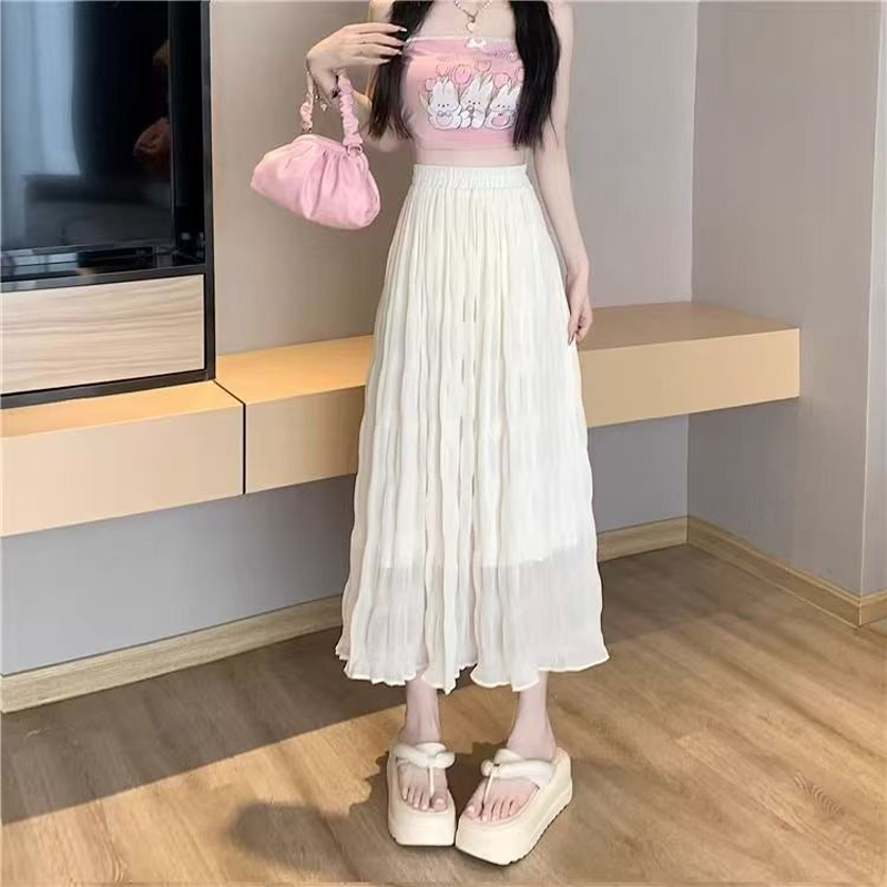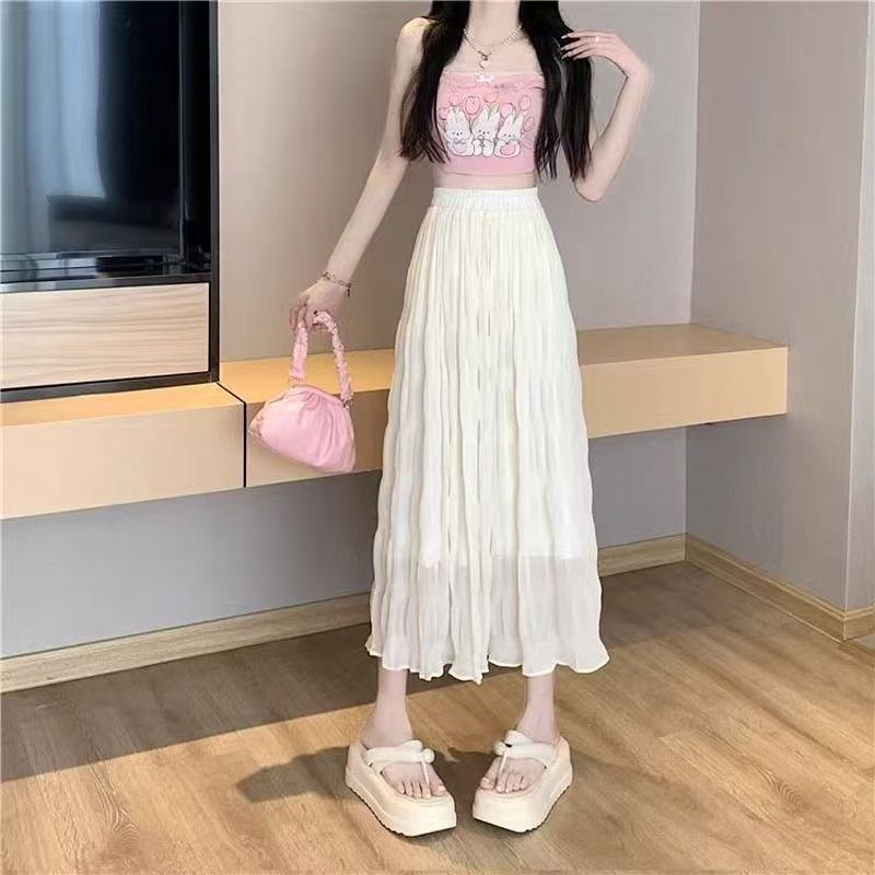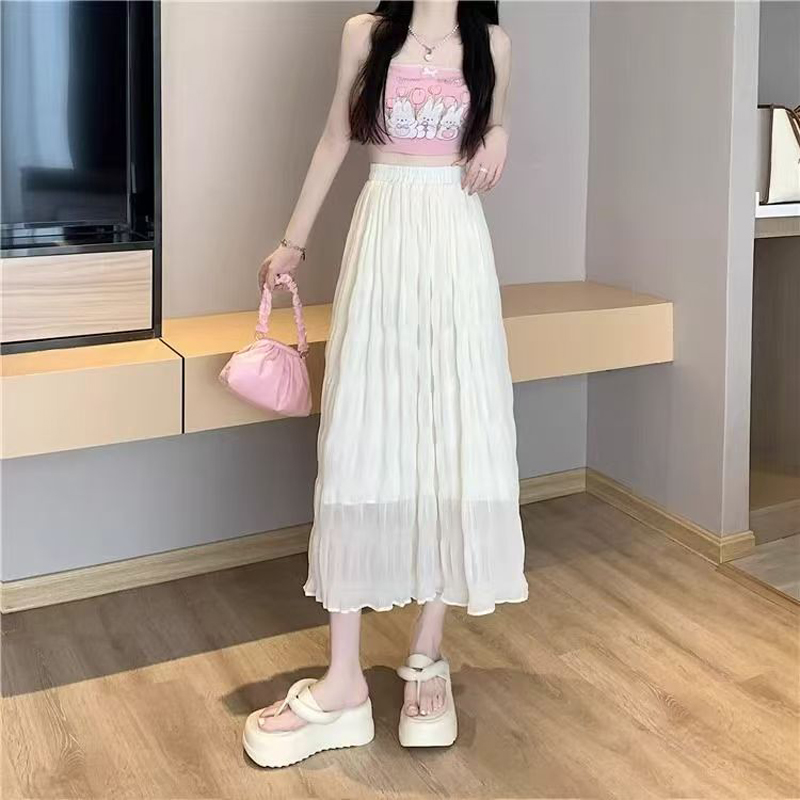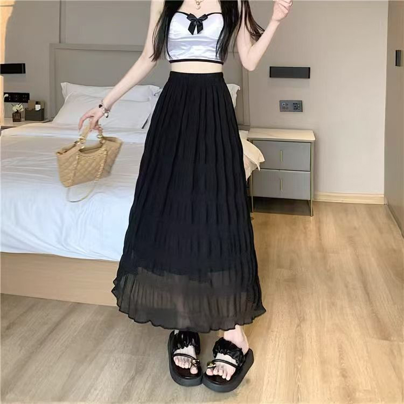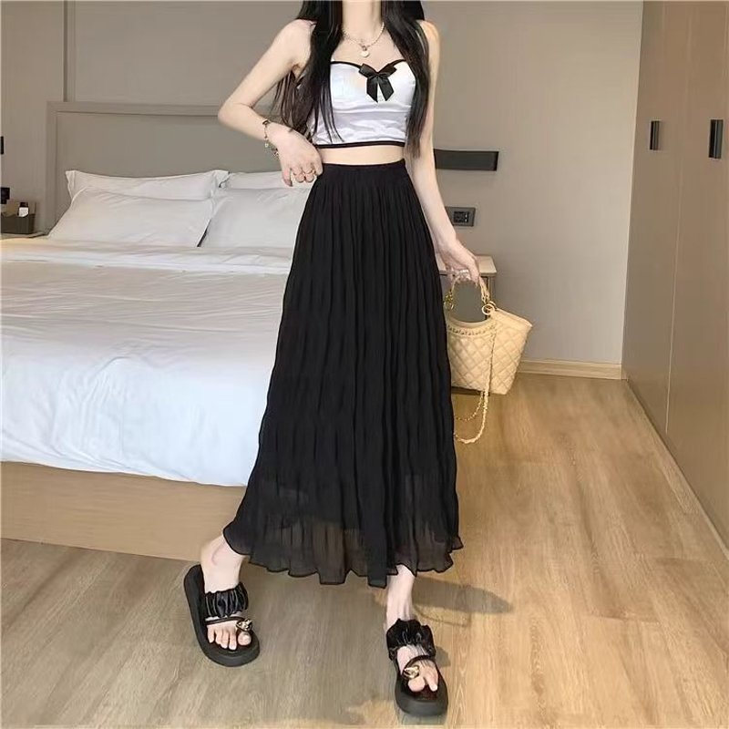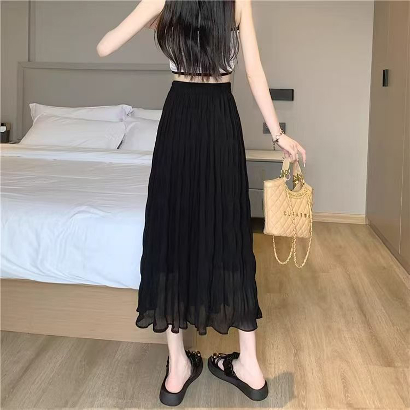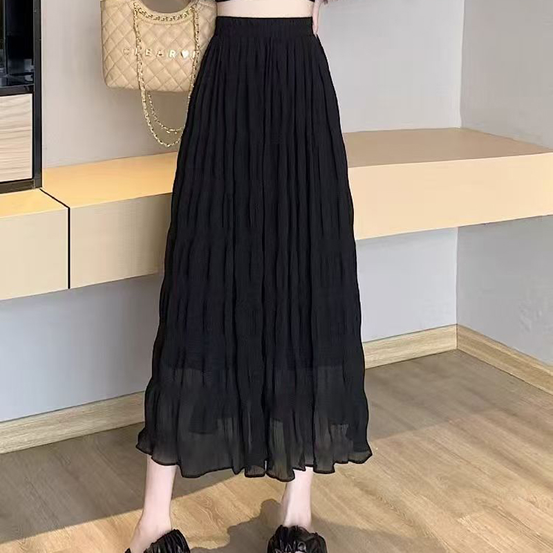 YF4547-(2色入内)夏季纤腰显瘦褶折波浪纹百褶裙 优雅时尚雪纺裙