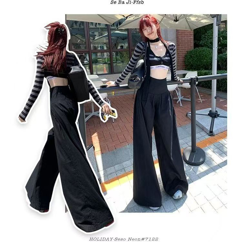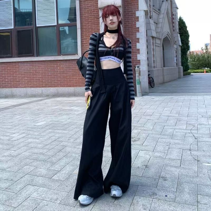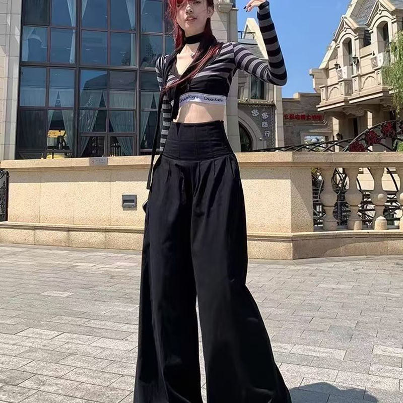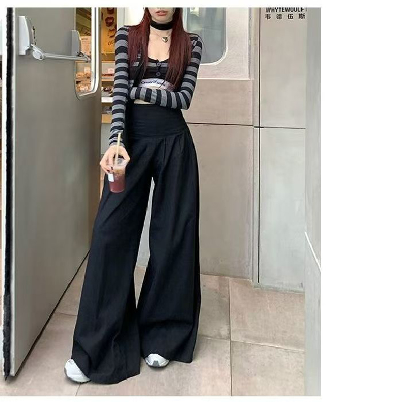 YF4748-图片色春夏高腰收腹显瘦褶折阔腿大码薄款休闲坠地感拖地裤