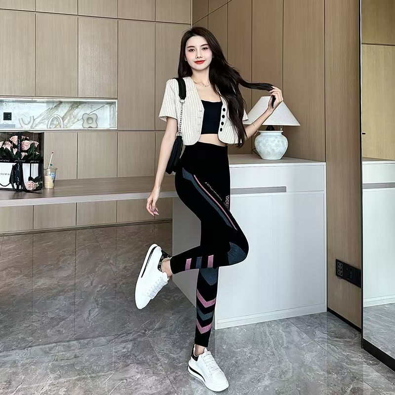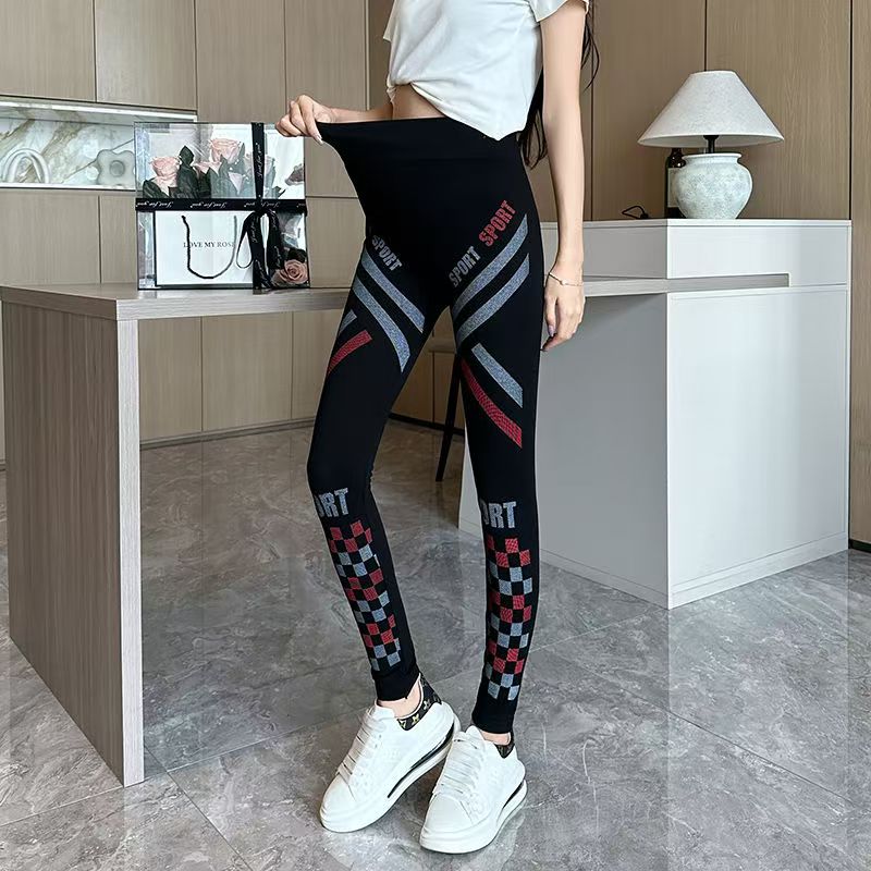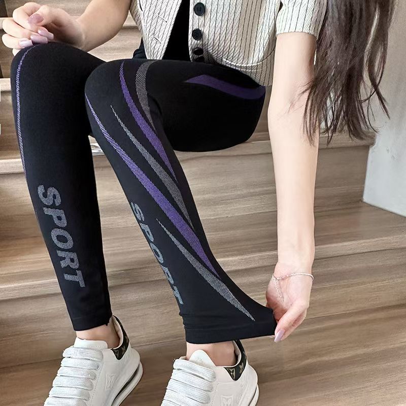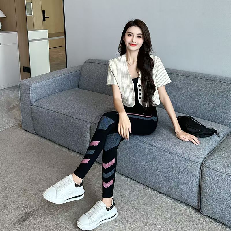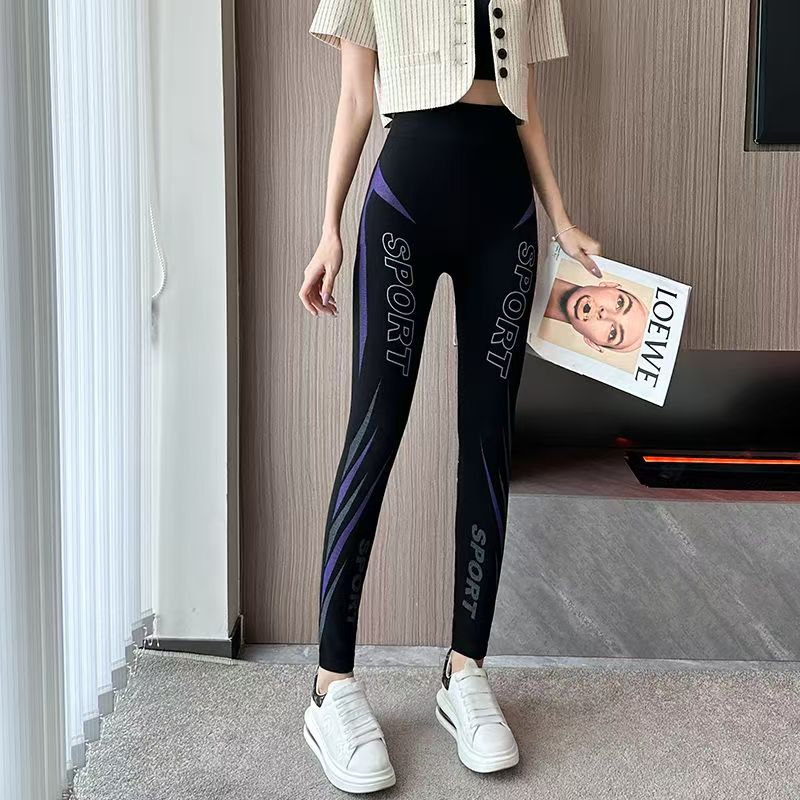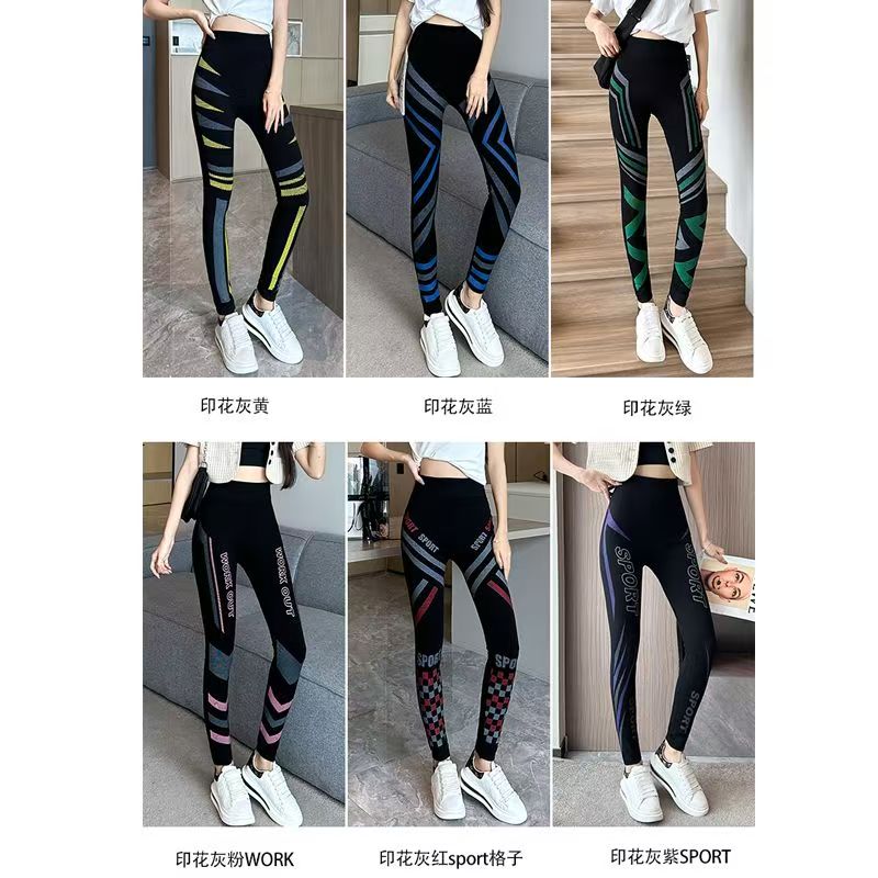 YF5913-(6色入内)莫代尔弹力包臀显瘦彩虹条纹字母印花外穿打底裤