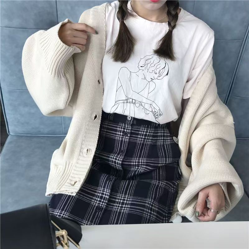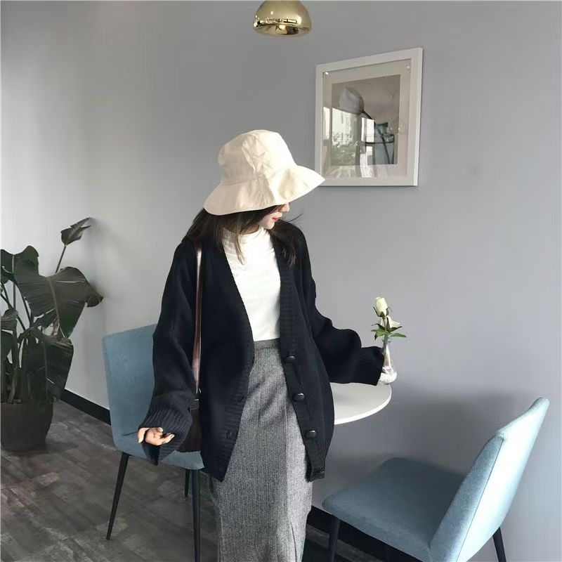 YF5968-(3色入内)韩版长袖开衫系扣宽松大码复古ins气质慵懒风针织毛衣外套