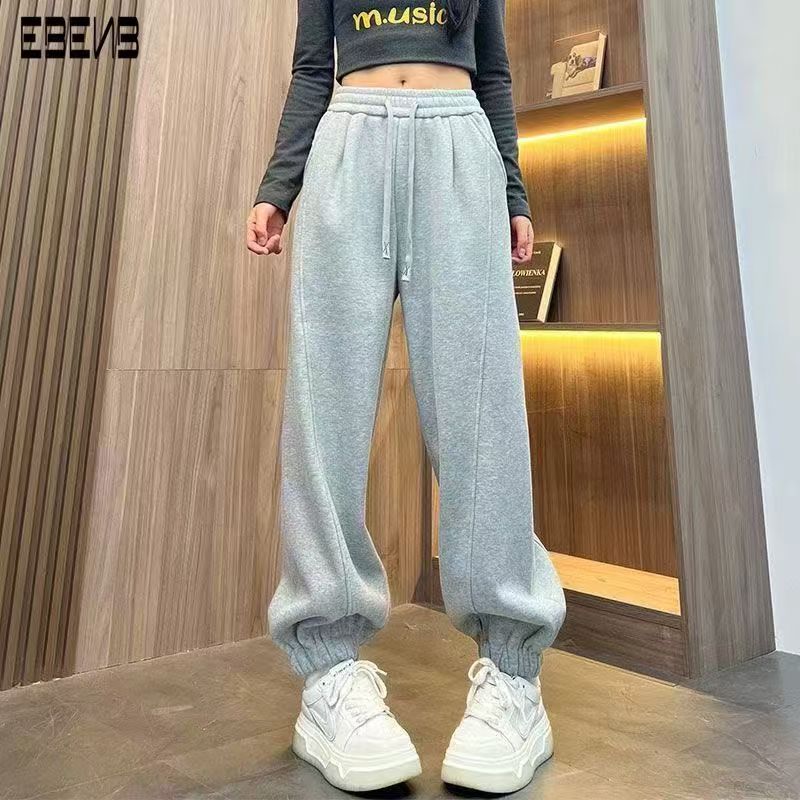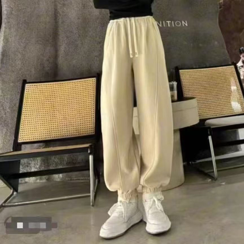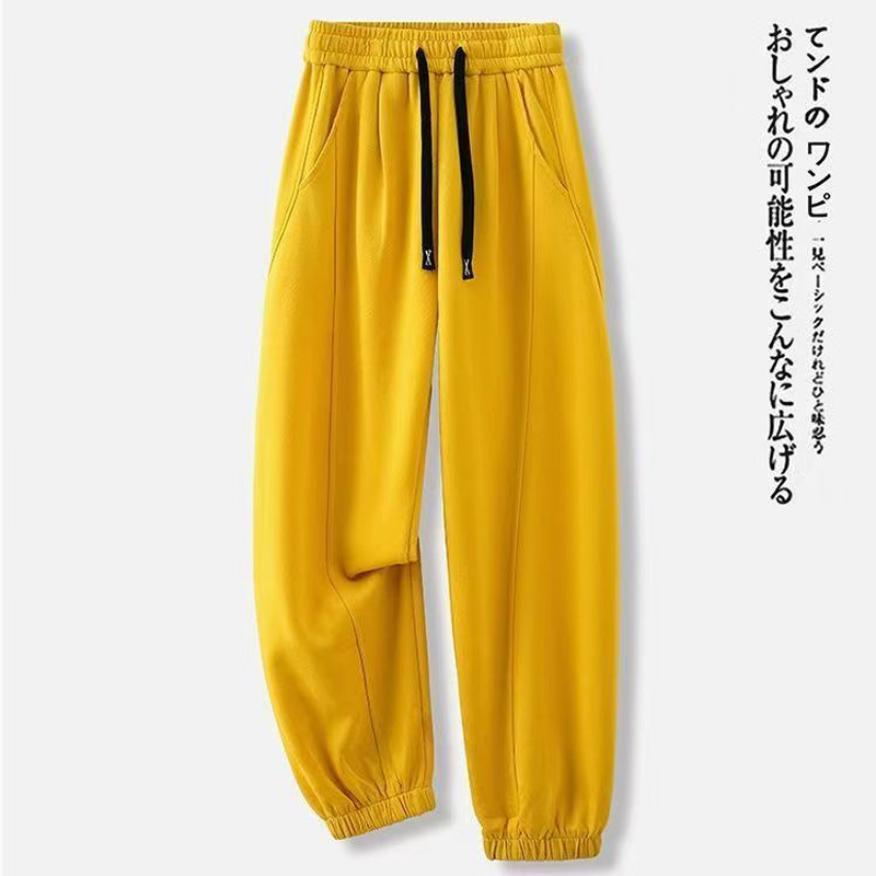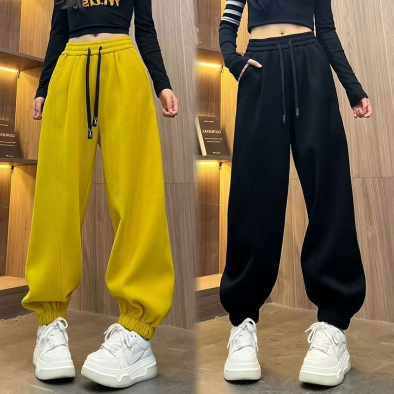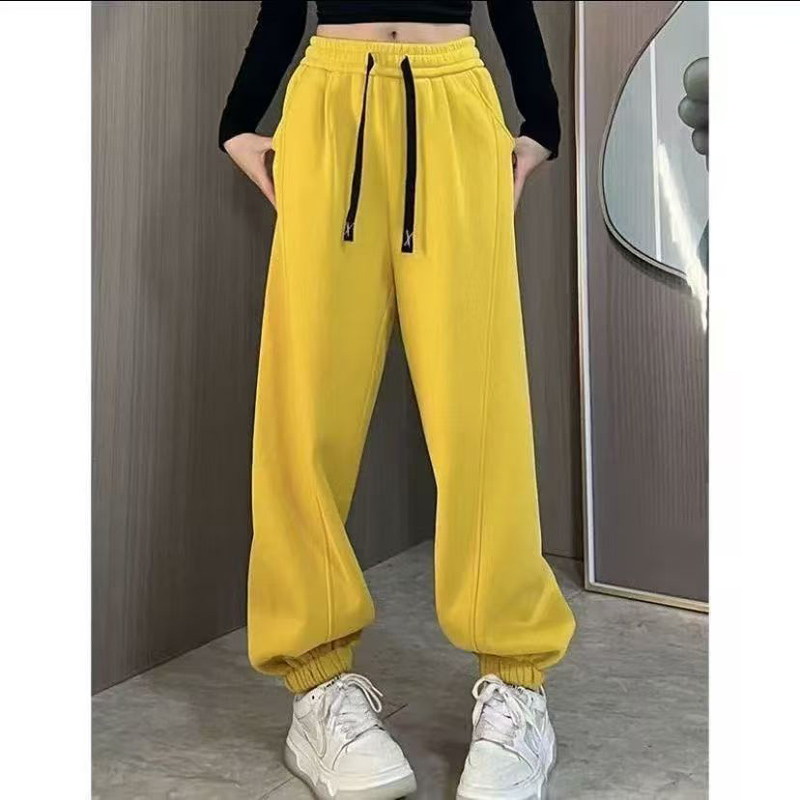 YF6445-(4色入内)学院风韩版秋冬新款绑绳高腰直筒束腿运动休闲卫衣长裤