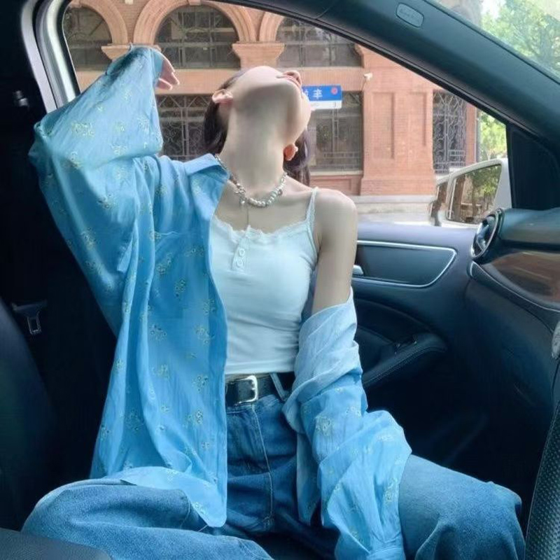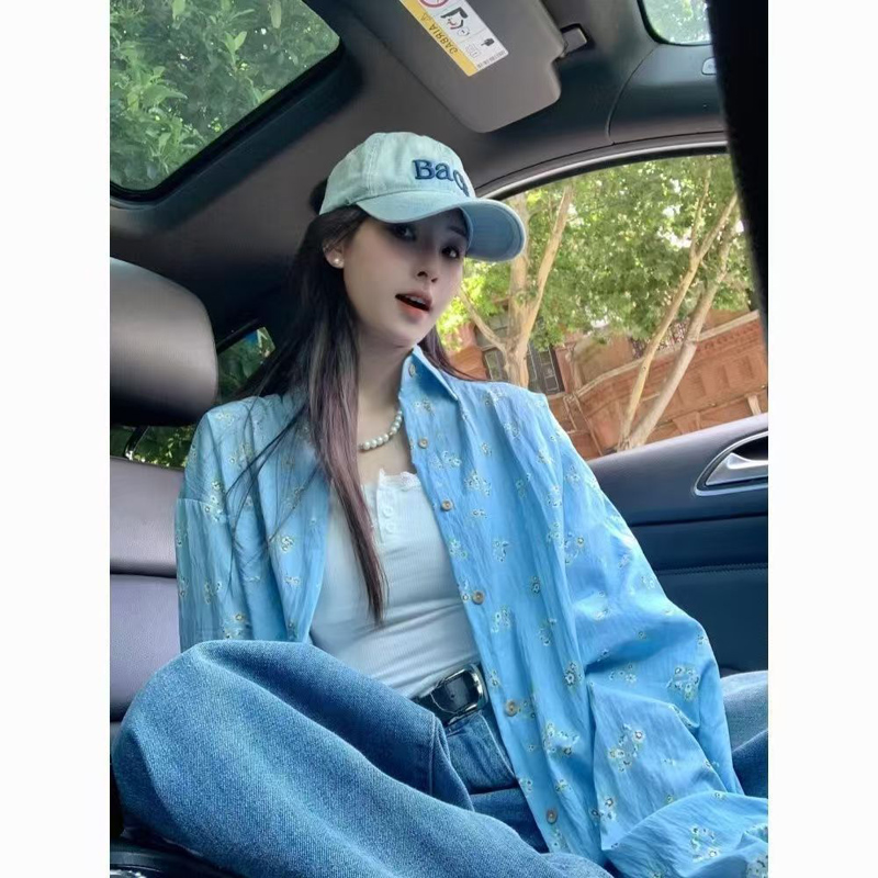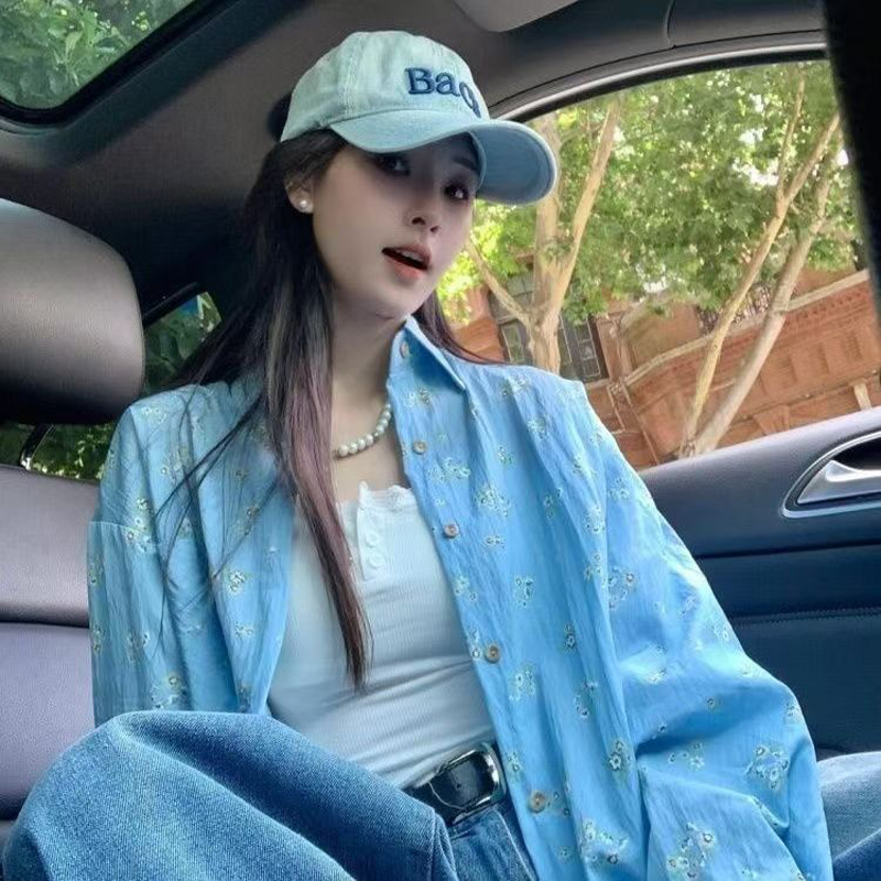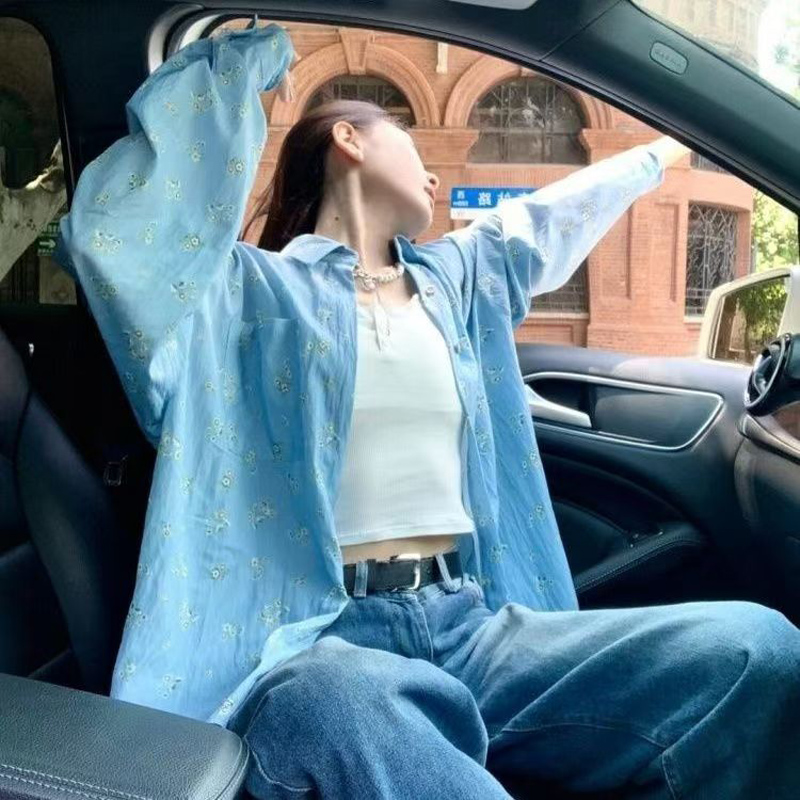 YF6077-图片色小清新春秋新款慵懒风长袖翻领碎花简约大码休闲上衣