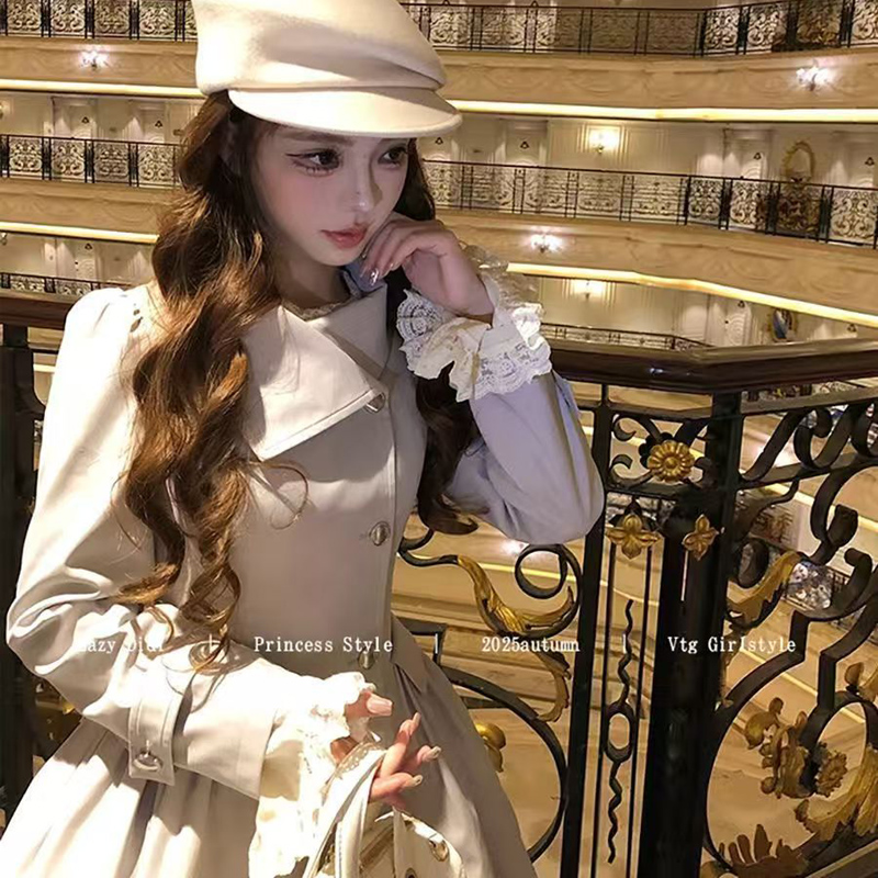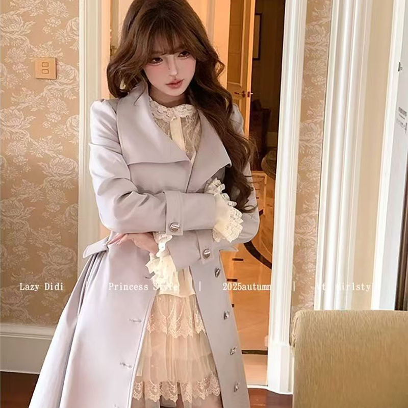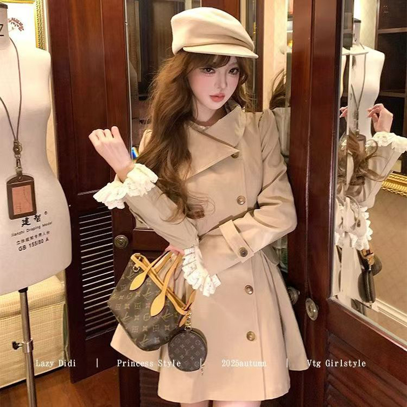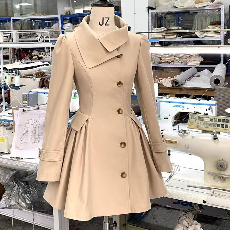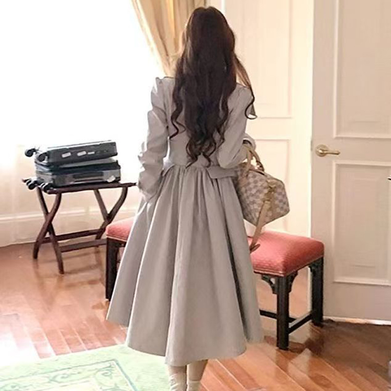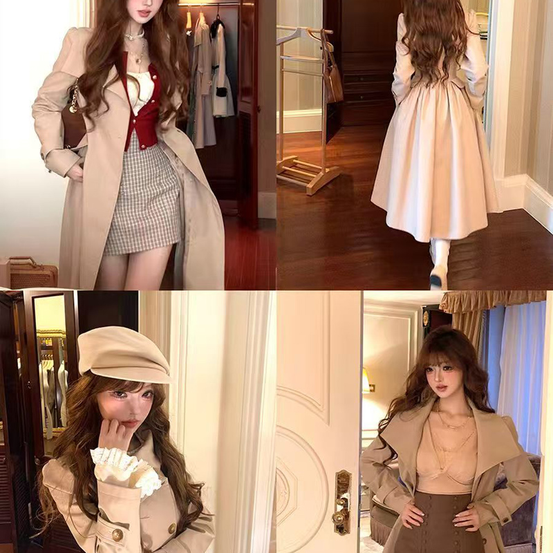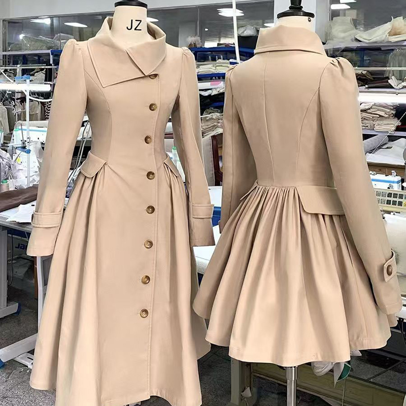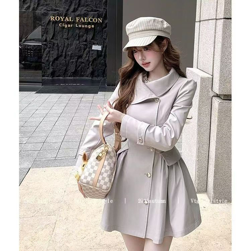YF6122-(2色入内)秋冬新款英伦风长袖翻领排扣收腹褶折裙摆高级感大衣