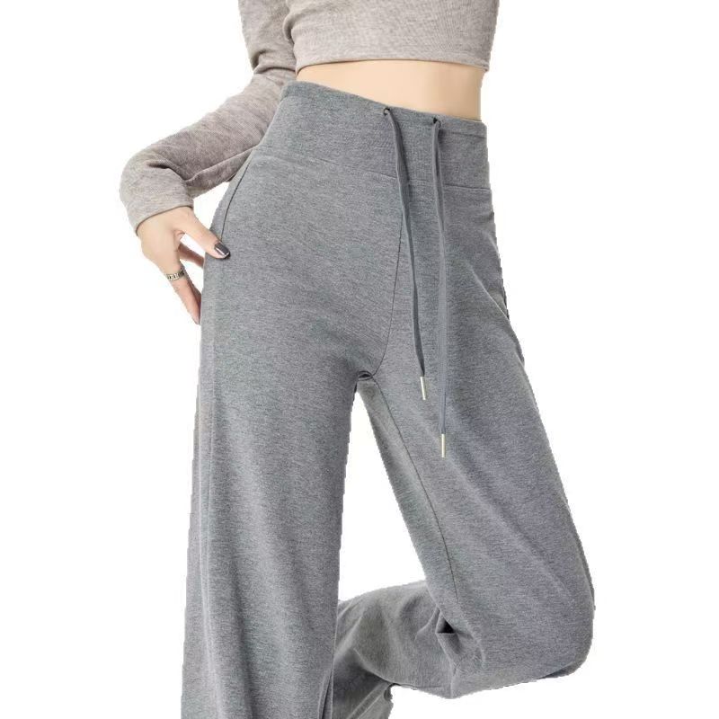 YF6141-(4色入内)秋冬时尚运动休闲抽绳收腹直筒坠地感纯色阔腿卫衣裤