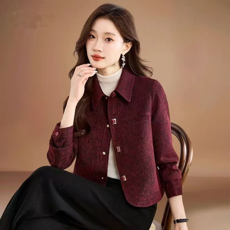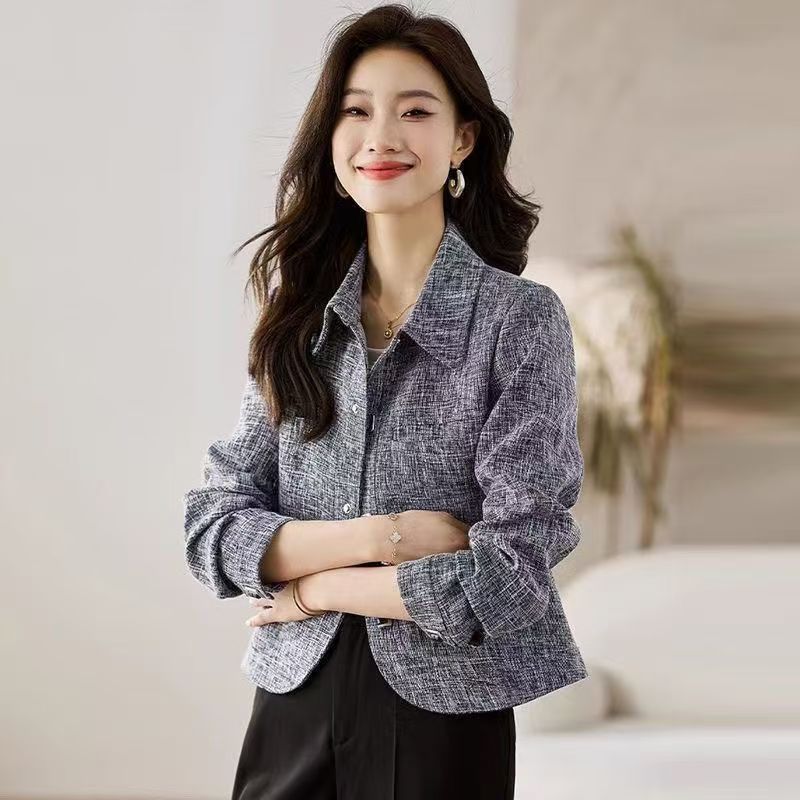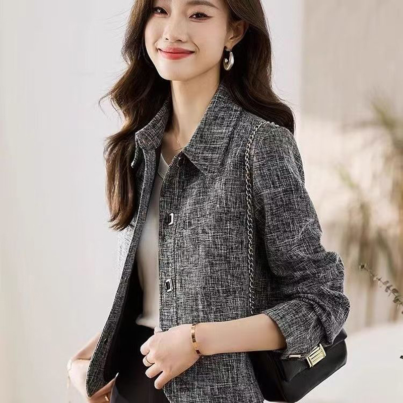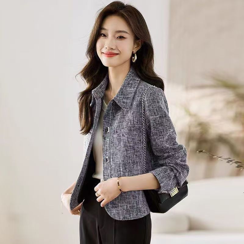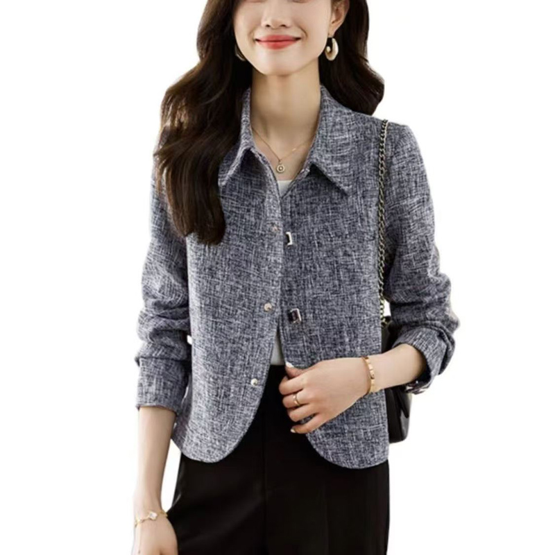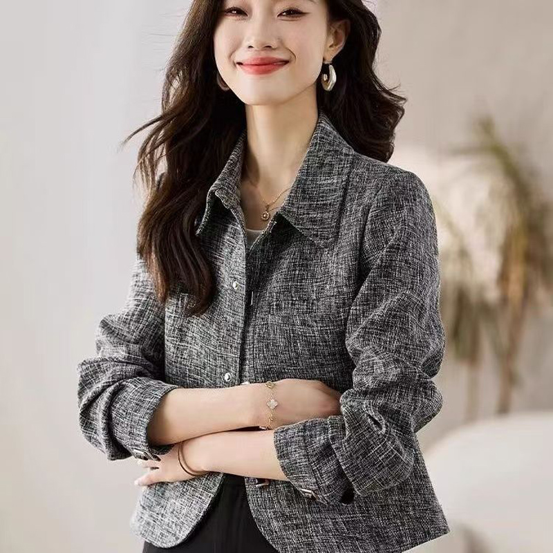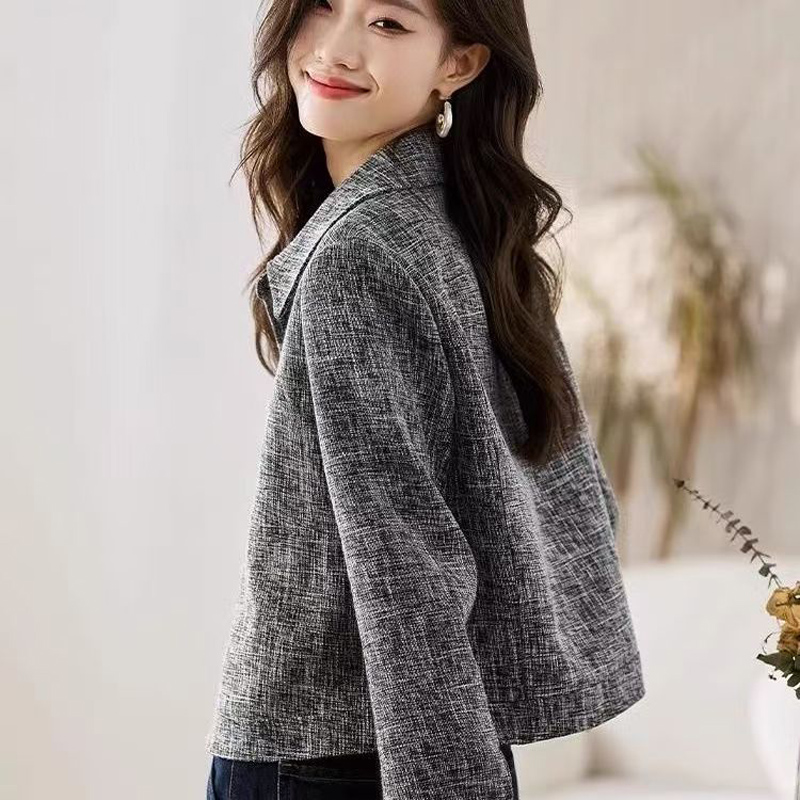 YF6155-(4色入内)小香风长袖POLO领个性纽扣短款秋冬休闲小西装上衣