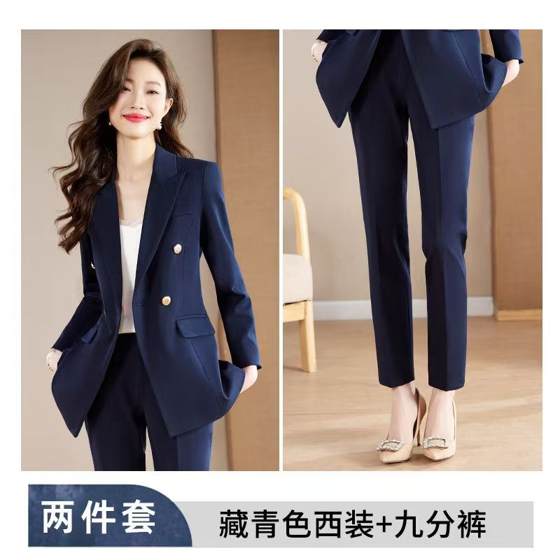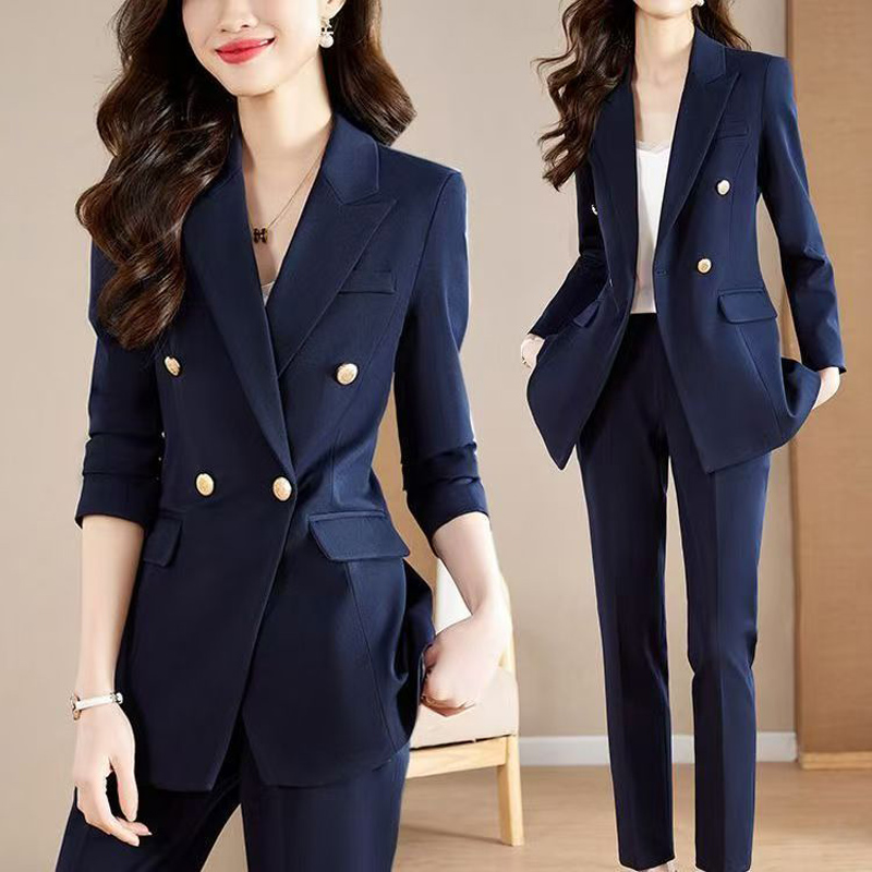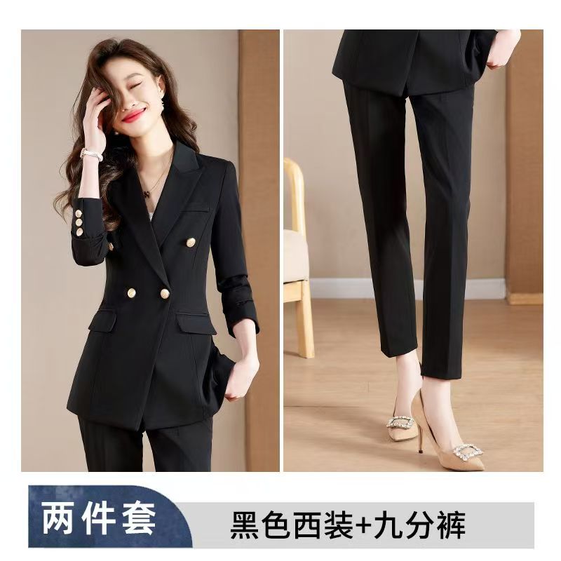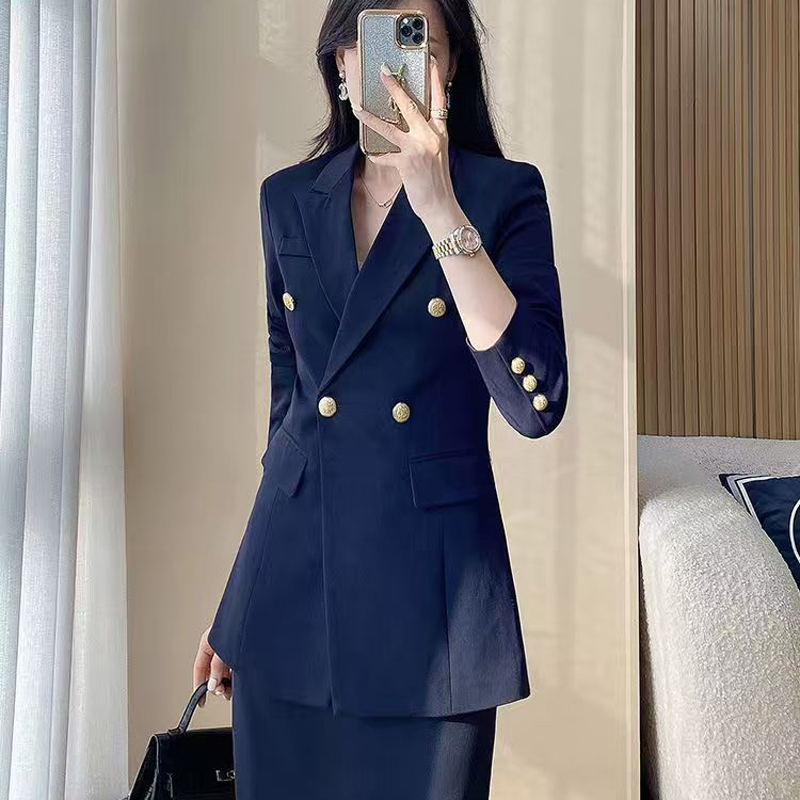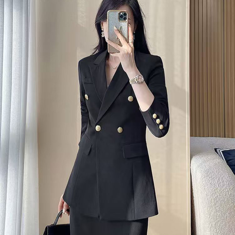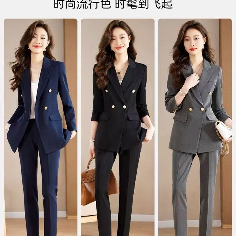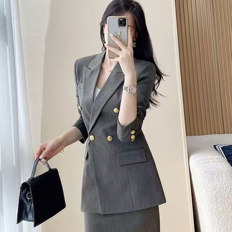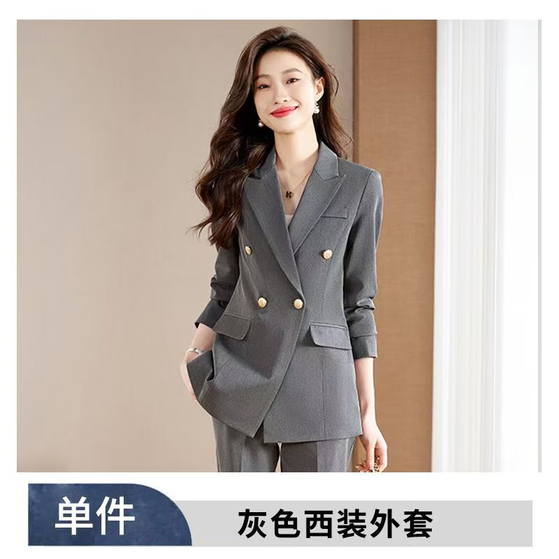 YF6173-(3色入内)韩版长袖深V双排扣修腰纯身优雅气质西服外套 女款职业装