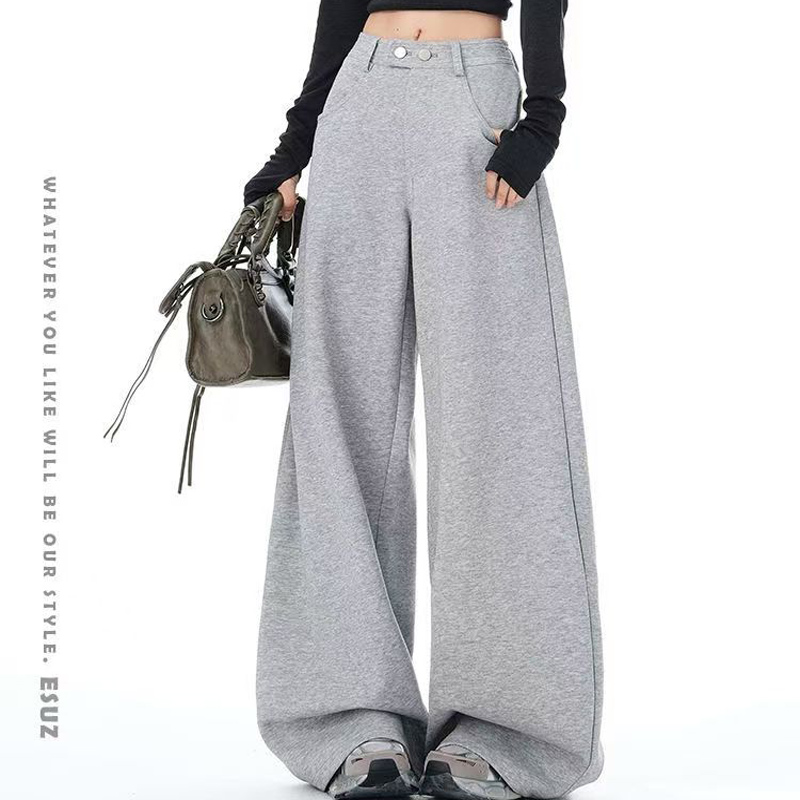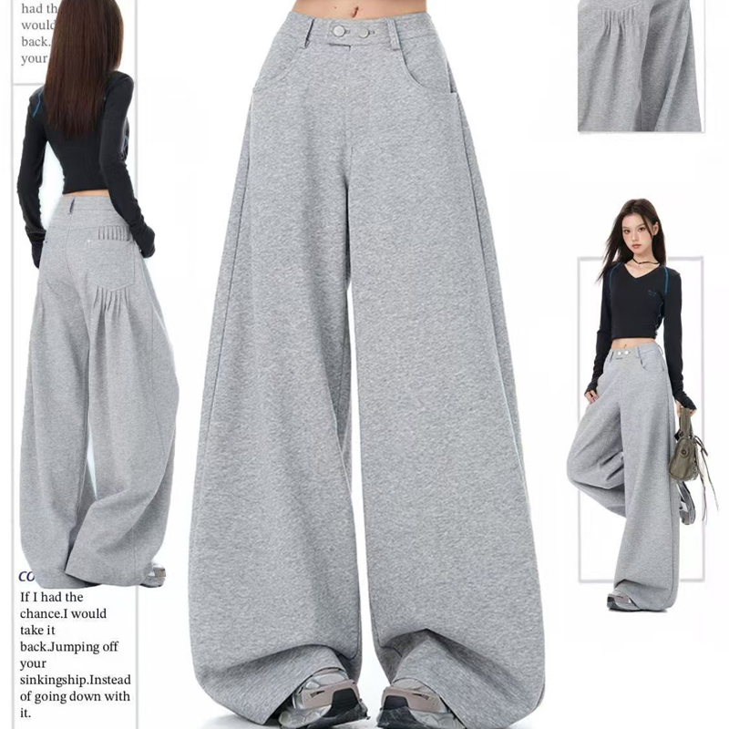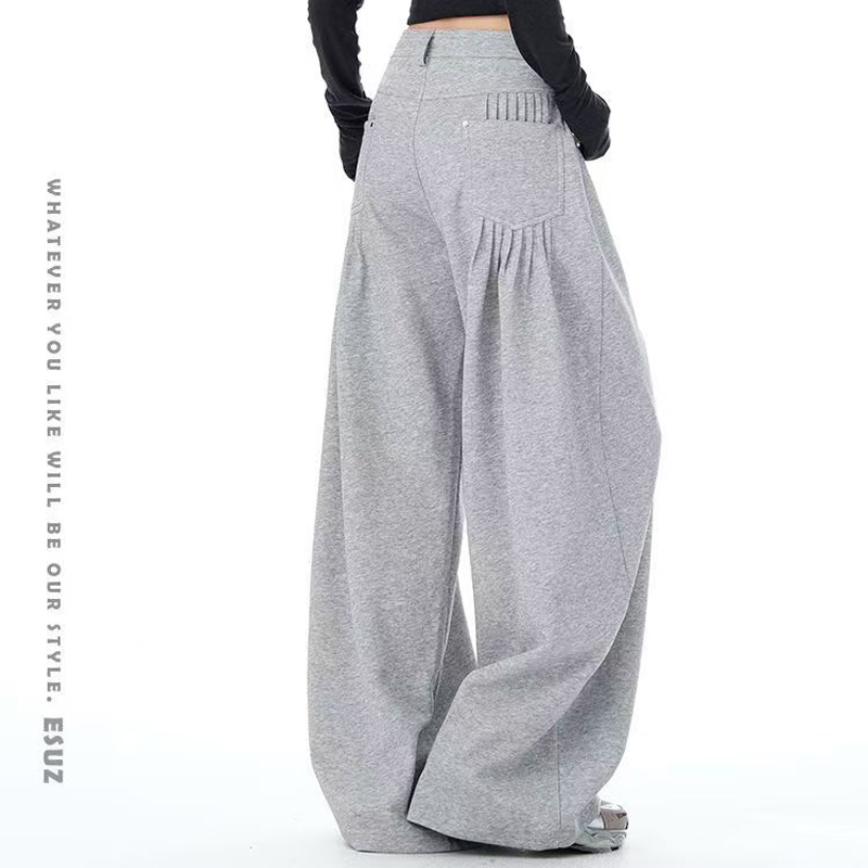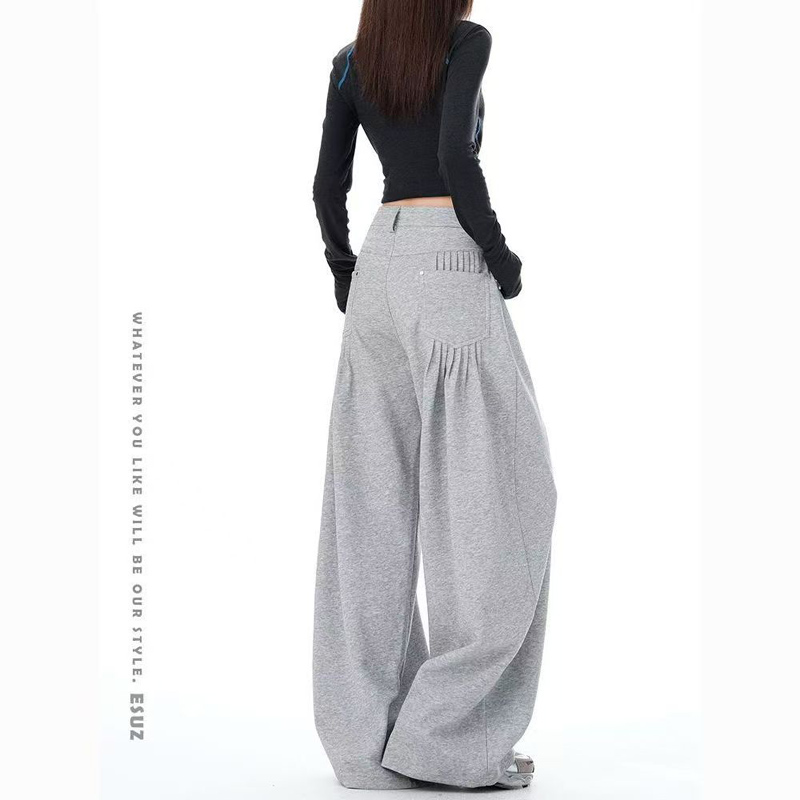 YF6192-(3色入内)港式时尚工艺褶折流苏感口袋设计直筒慵懒风休闲卫衣裤
