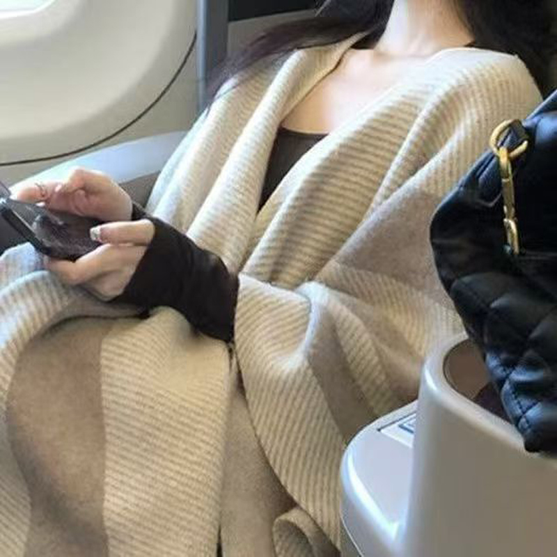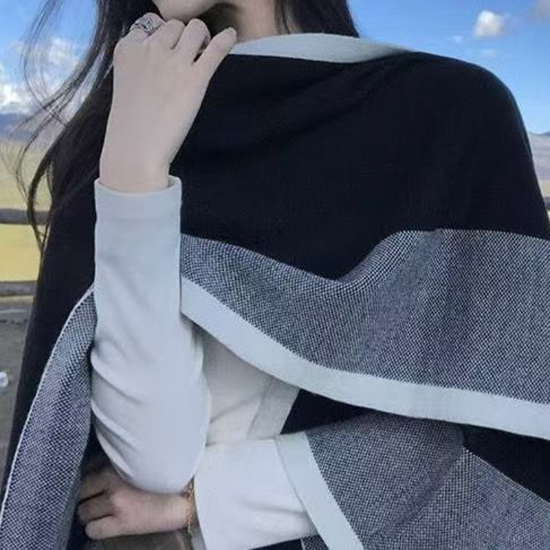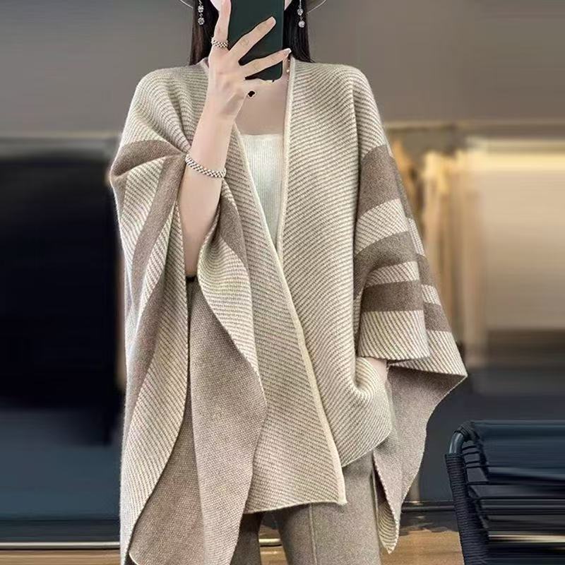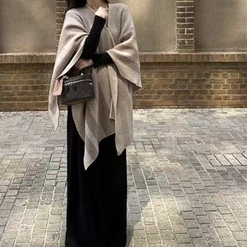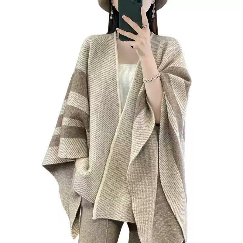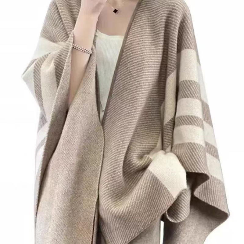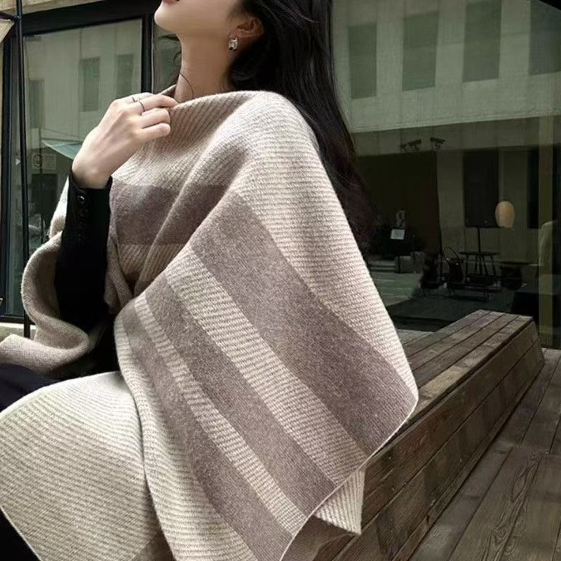 YF6201-(3色入内)优雅时尚冬装条纹提花斗蓬 加厚保暖时尚围巾披肩