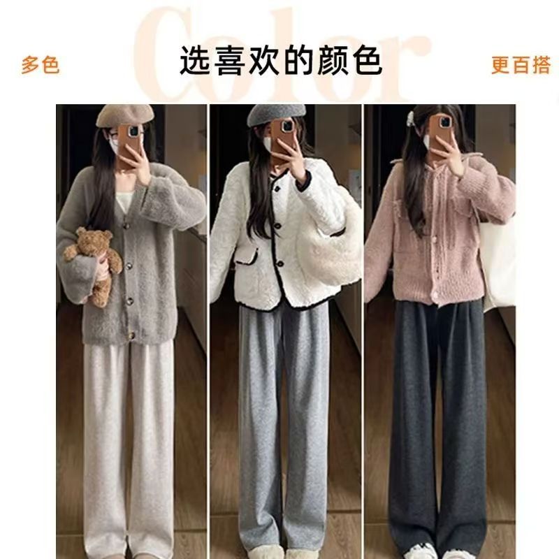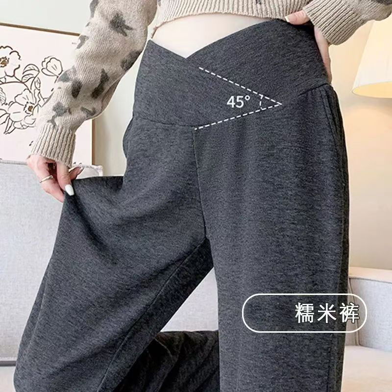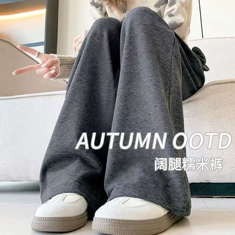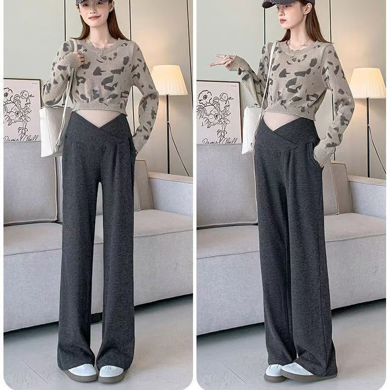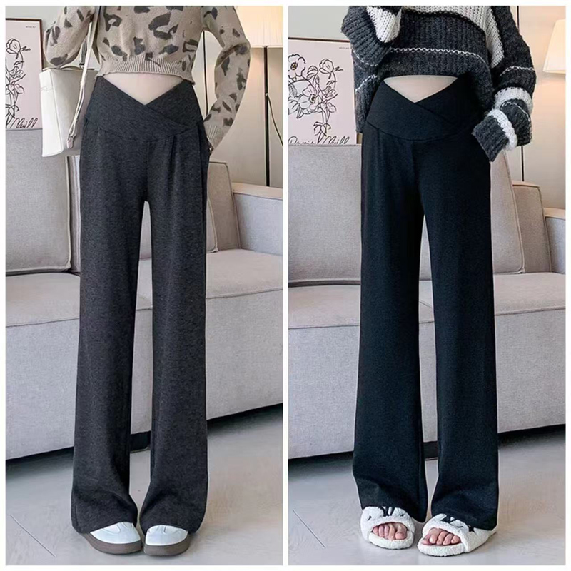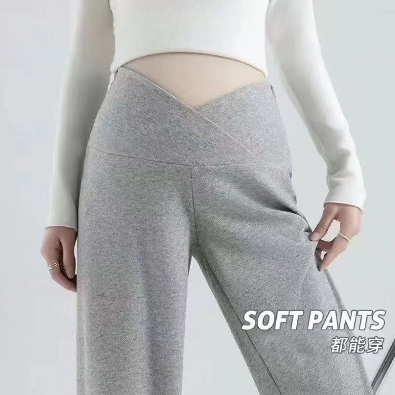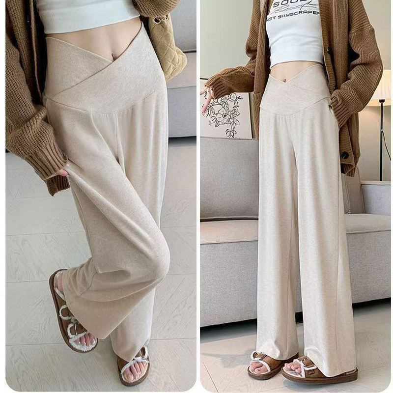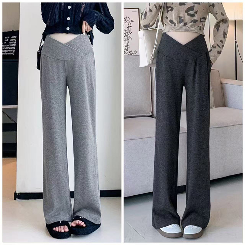 YF6204-(4色入内)新款柔软坠地感交叉设计松紧腰阔腿运动休闲百搭长裤