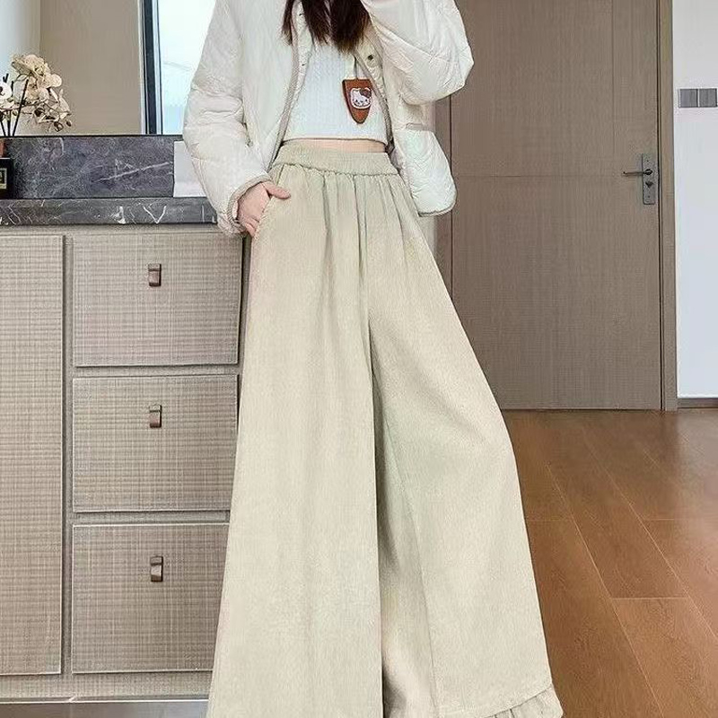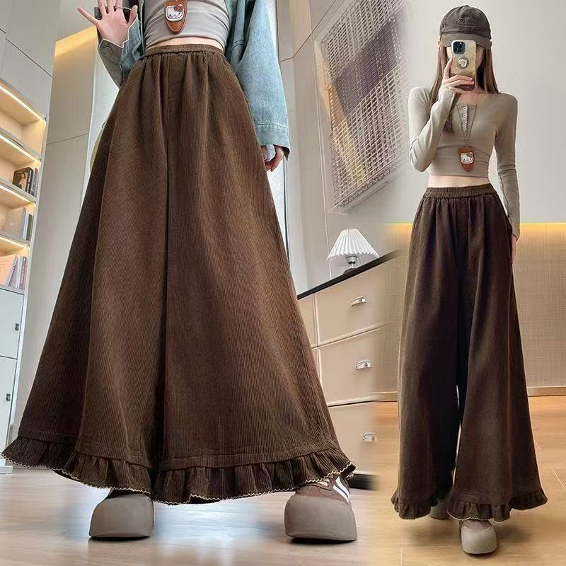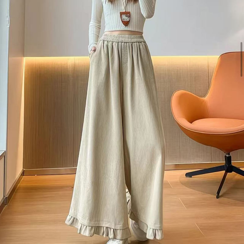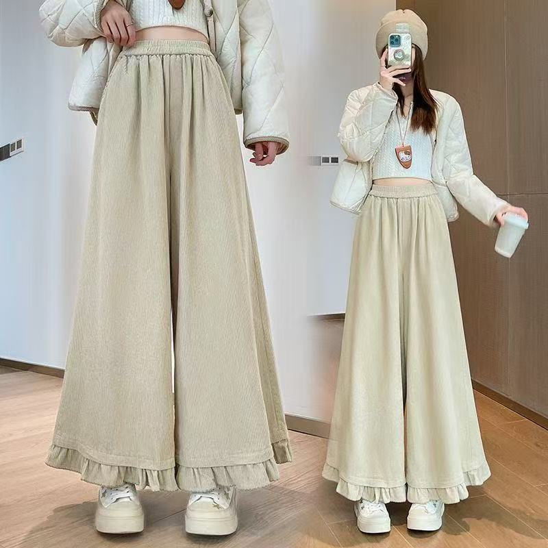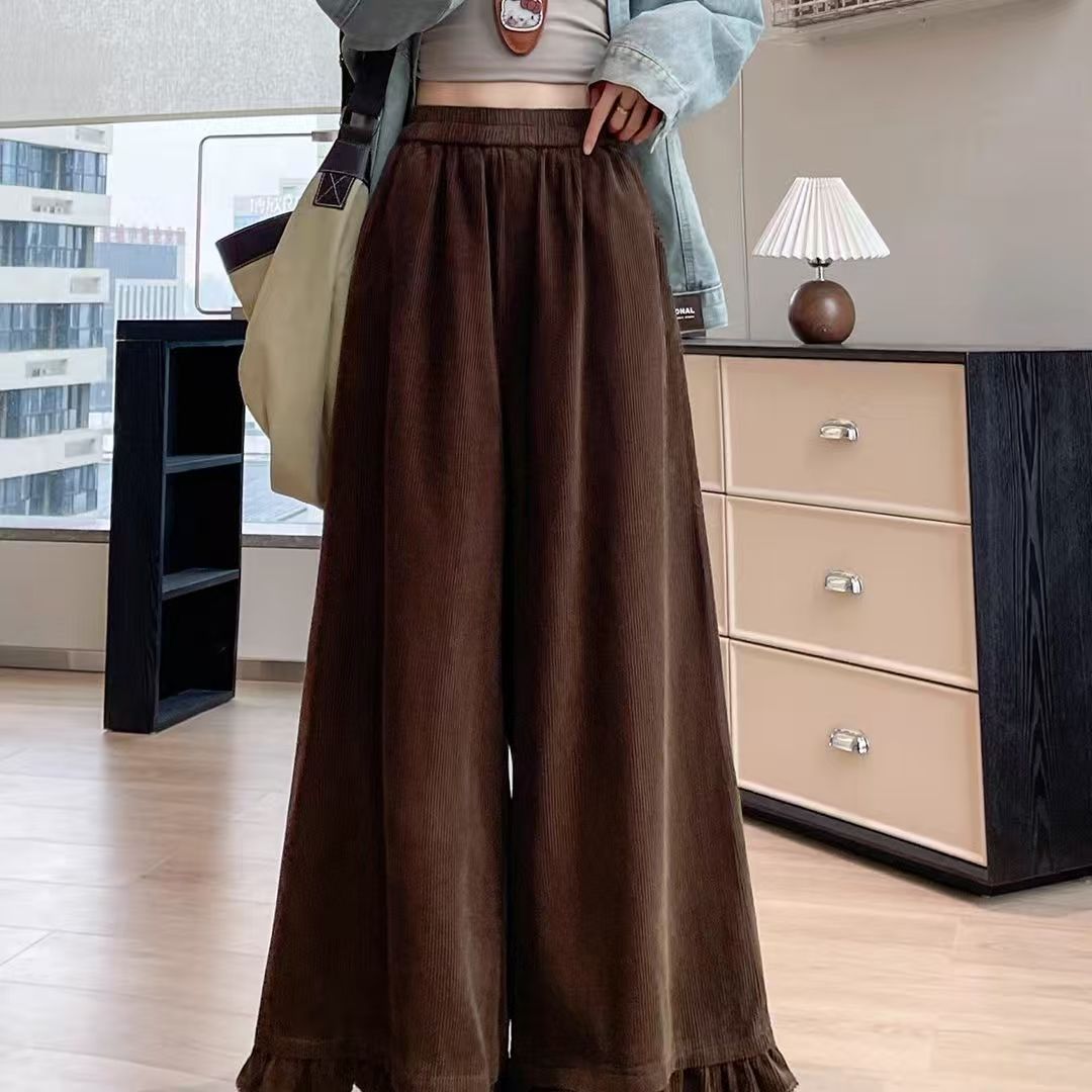 YF6213-(3色入内)木耳边设计坠地感阔腿收腹高腰直筒灯芯绒秋冬新款休闲裤