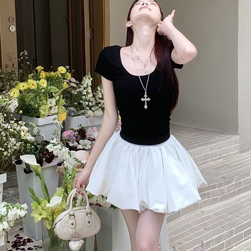 YF6219-(3色入内)辣妹芭蕾花苞设计松紧腰收腹显瘦防走光内搭蓬蓬短裙