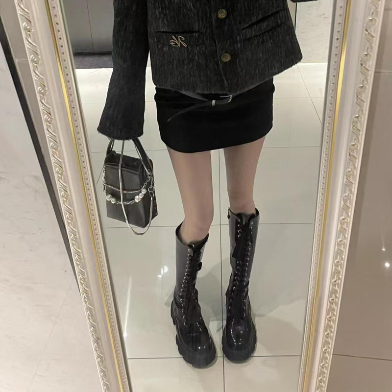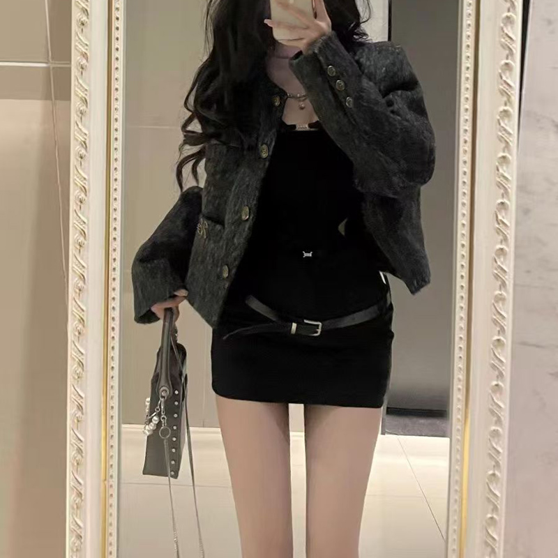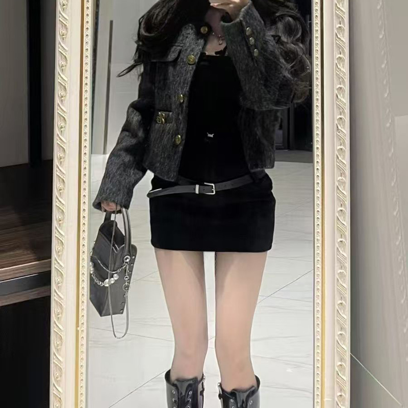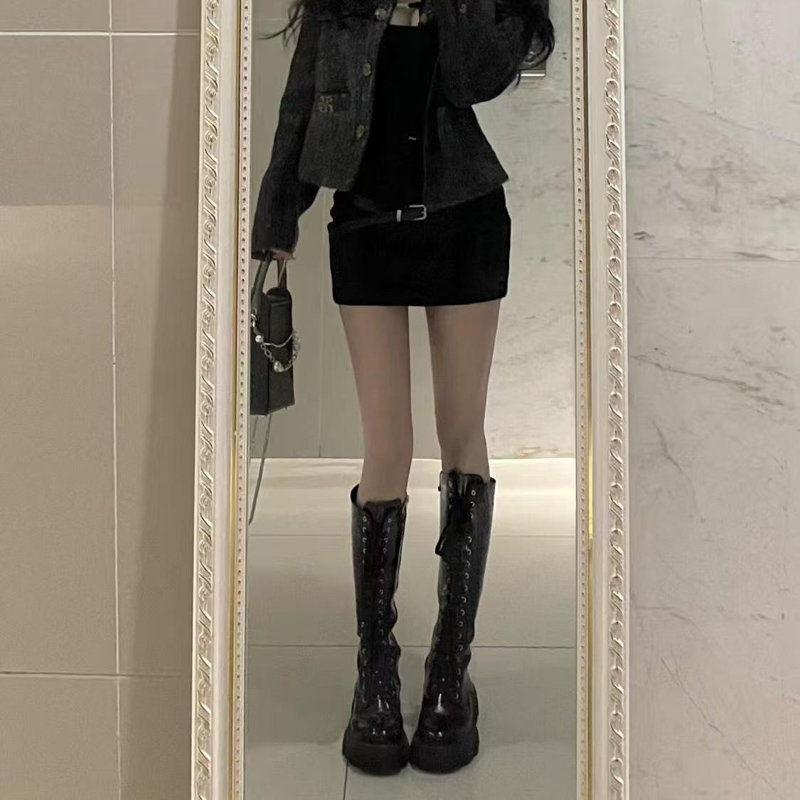 YF6225-图片色韩版纯色时尚保暖毛呢高腰包臀显瘦百搭黑色A字防走光短裙