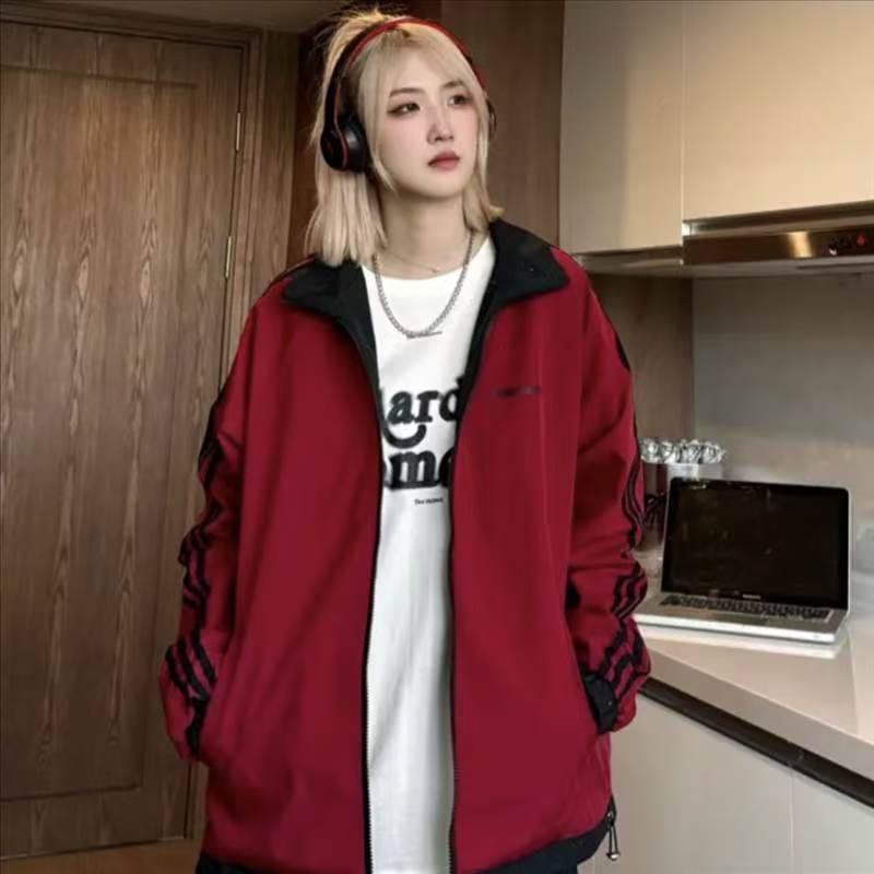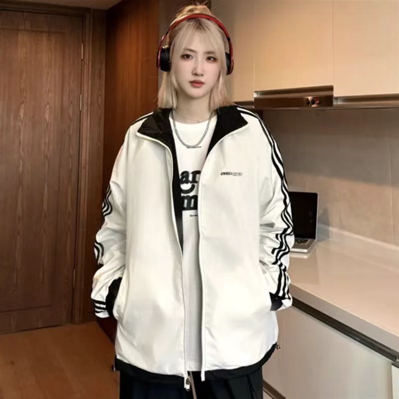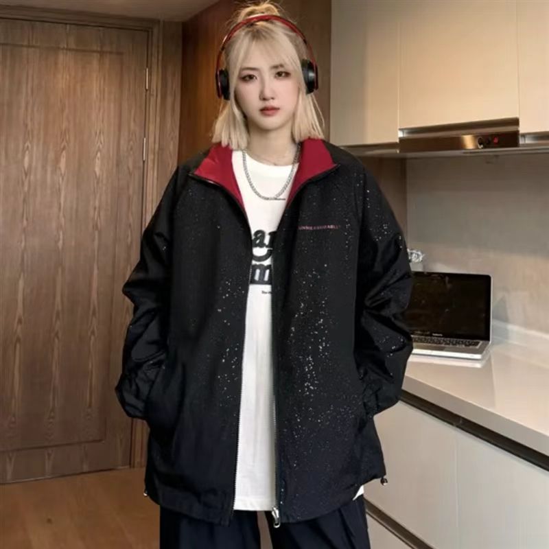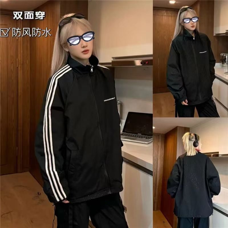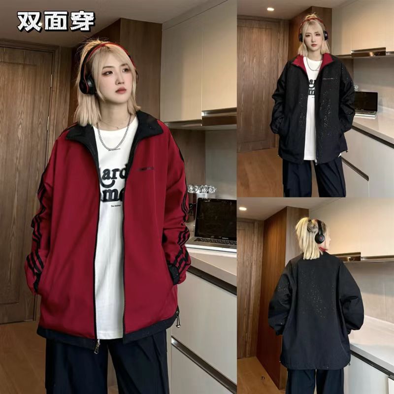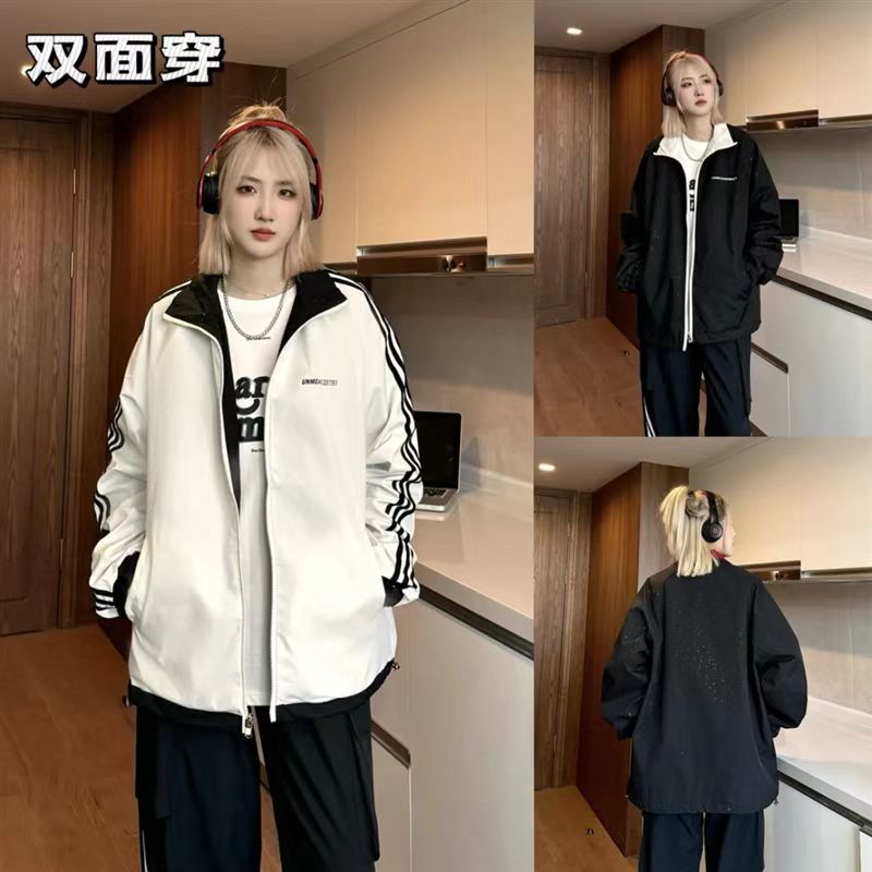 YF6254-(3色入内)时尚运动感正反面两穿设计长袖拉链防风闪闪亮休闲外套