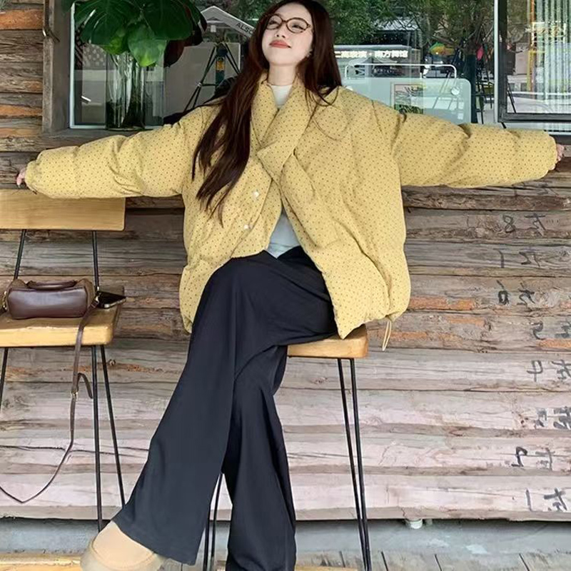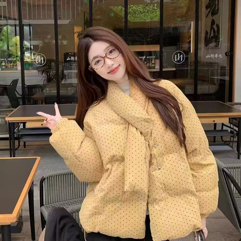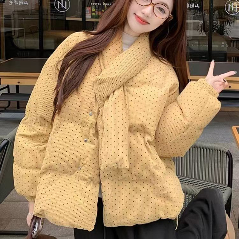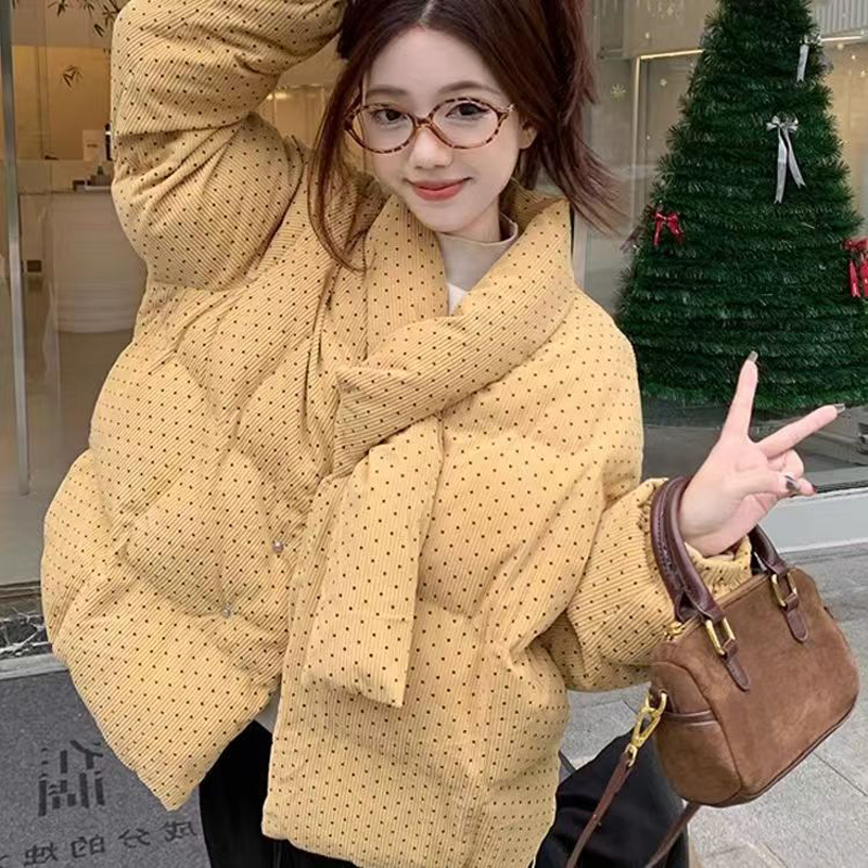 YF6261-图片色韩版加厚加棉波点棉质泡泡袖围巾领别致设计冬季新款上衣