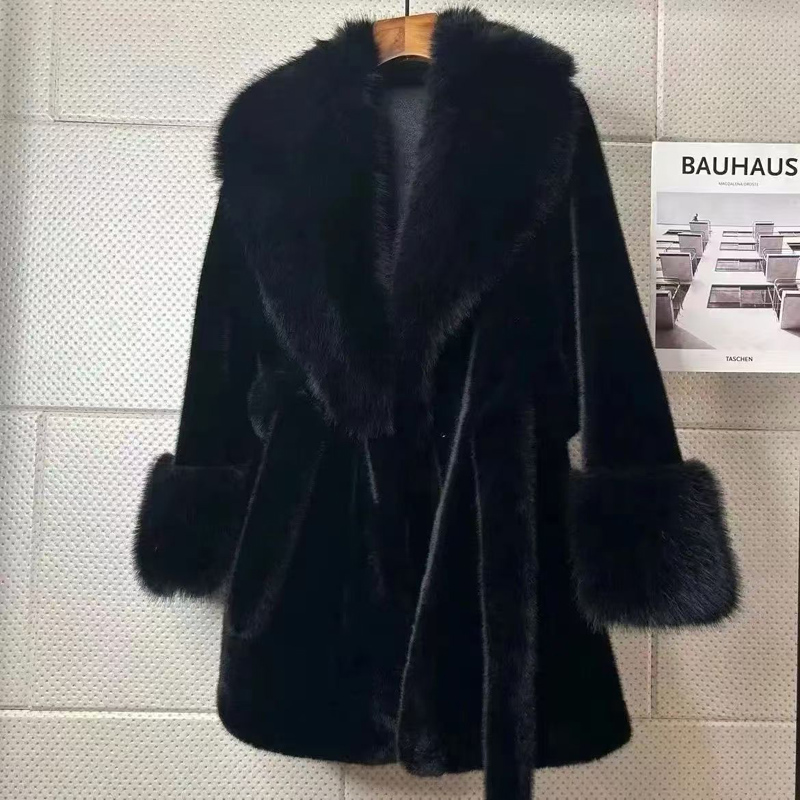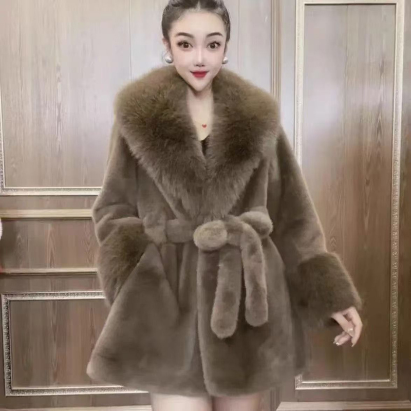 YF6264-(4色入内)高级感长款腰带修腰显瘦加绒加厚名媛气质仿皮草大衣外套